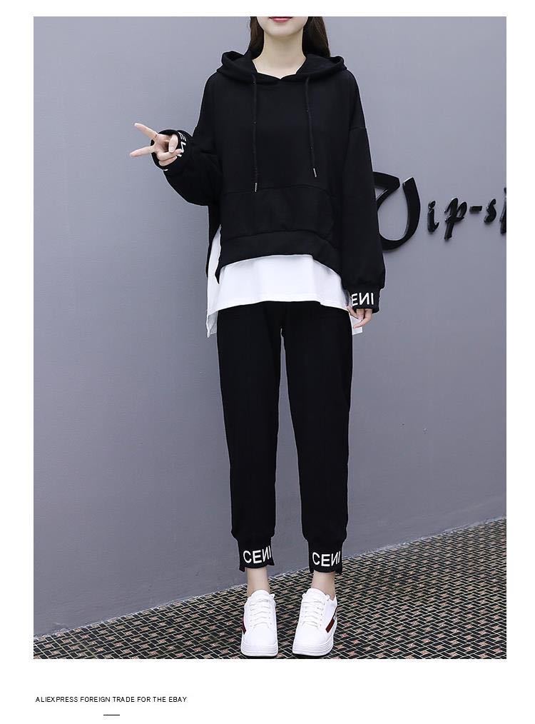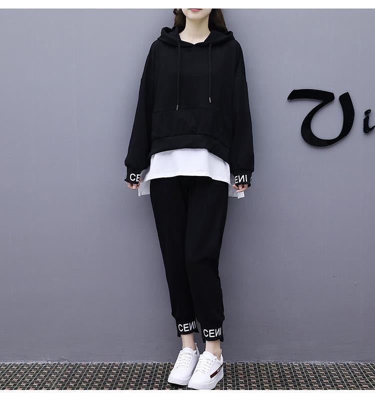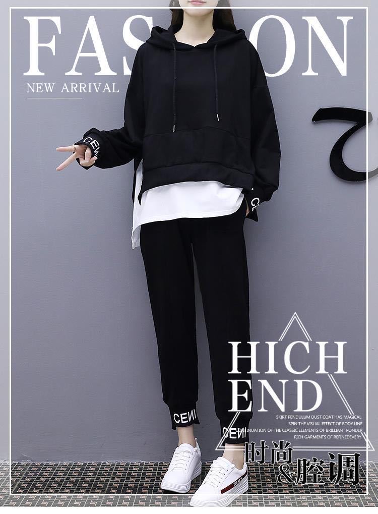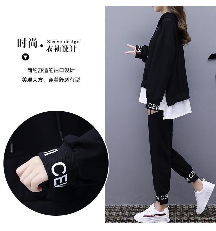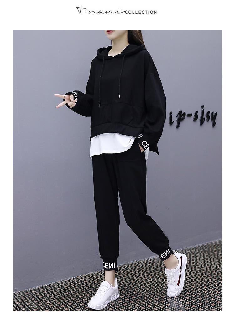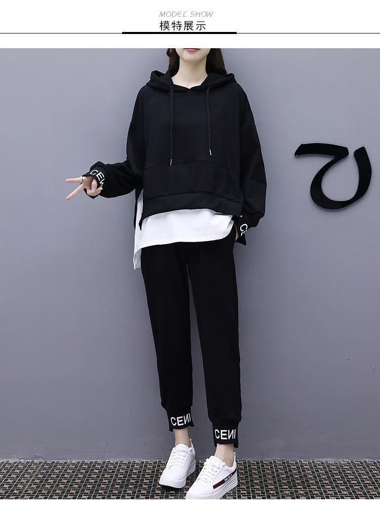 스포츠 세트 여성 가을과 겨울 학생복 한국식 루즈한 패션 2020 소셜 하라주쿠 스타일 캐주얼 BF 투피스 세트
