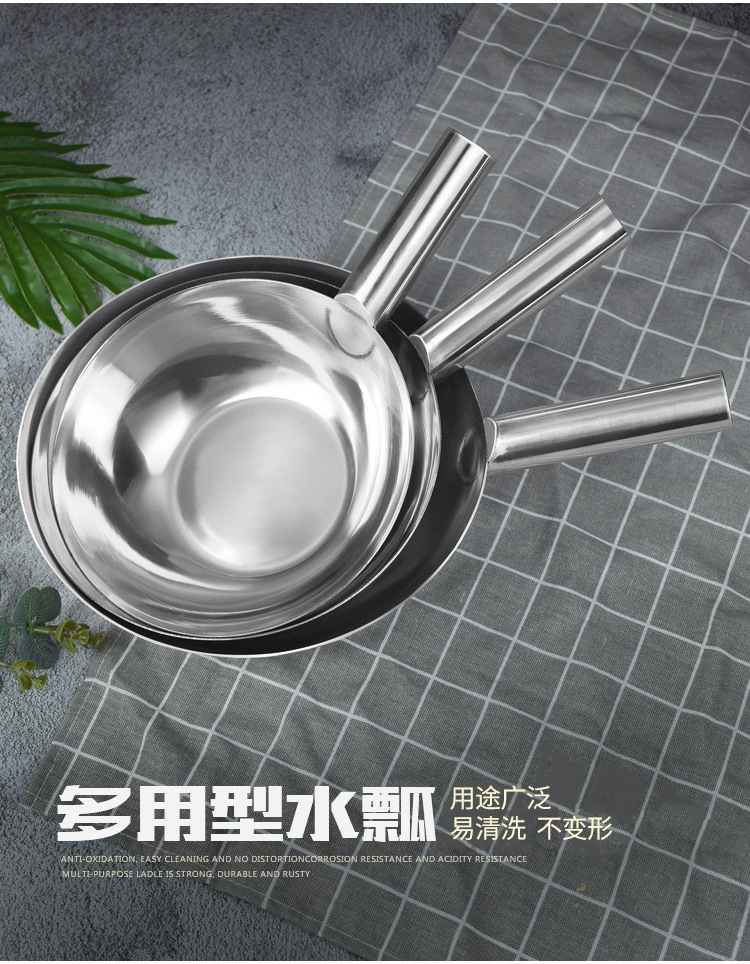 도매 연장 스테인레스 스틸 두꺼운 물 국자 손잡이 긴 손잡이 수프 스푼 주방 호텔 물 국자 죽 숟가락 밀봉 국자