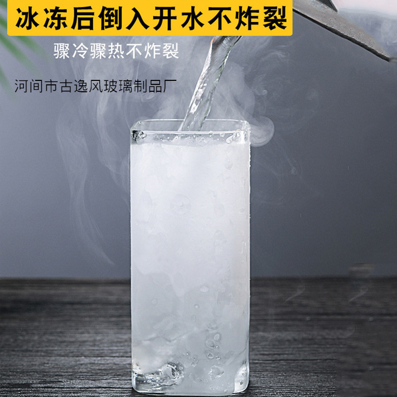 고붕규산 내열 유리컵 인스 스타일 꽃차컵 맥주 위스키 우유 주스컵 사각형 인스 스타일
