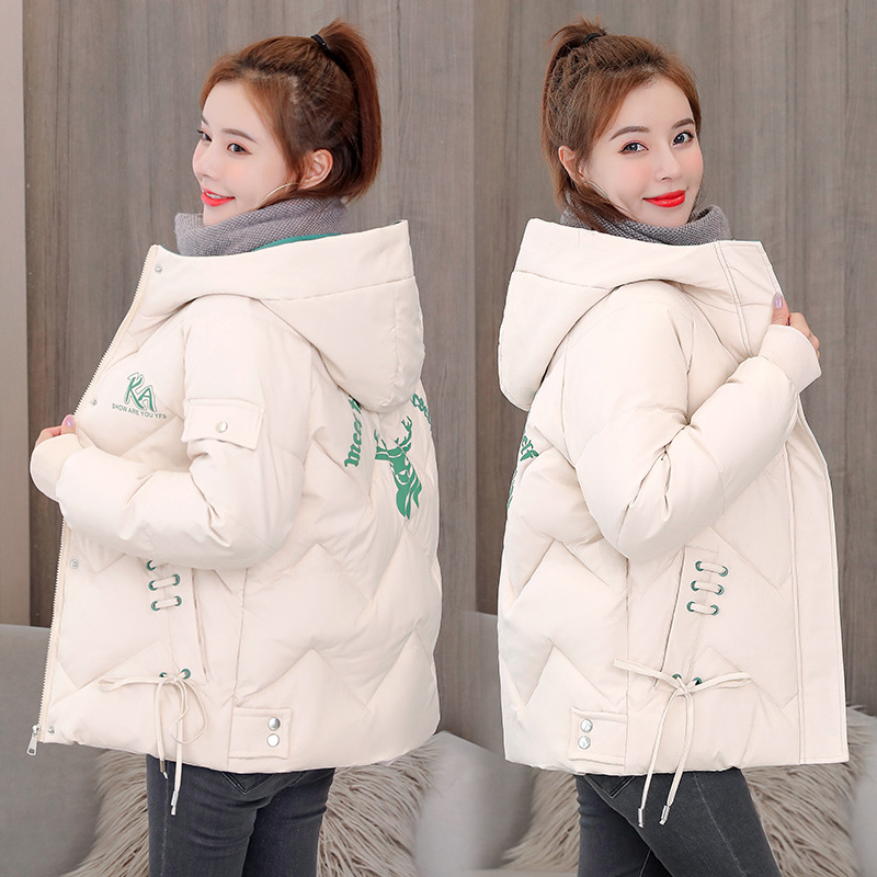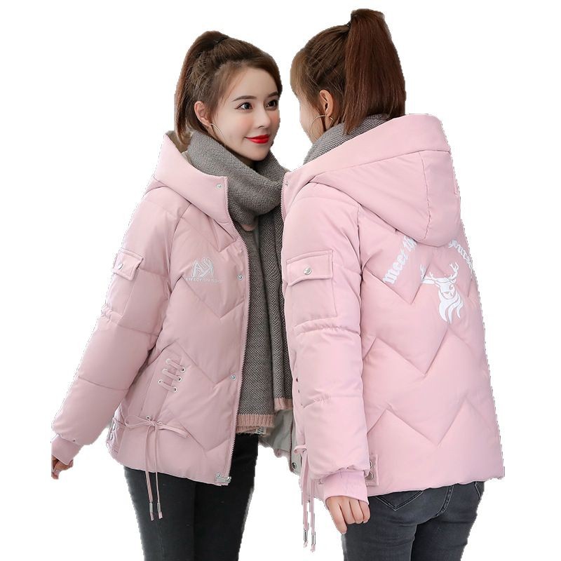 여성용 면 패딩 의류 짧은 겨울 한국 스타일 느슨한 두꺼운 학생 빵 옷 쁘띠를위한 새로운 후드 다운 코튼 패딩 재킷