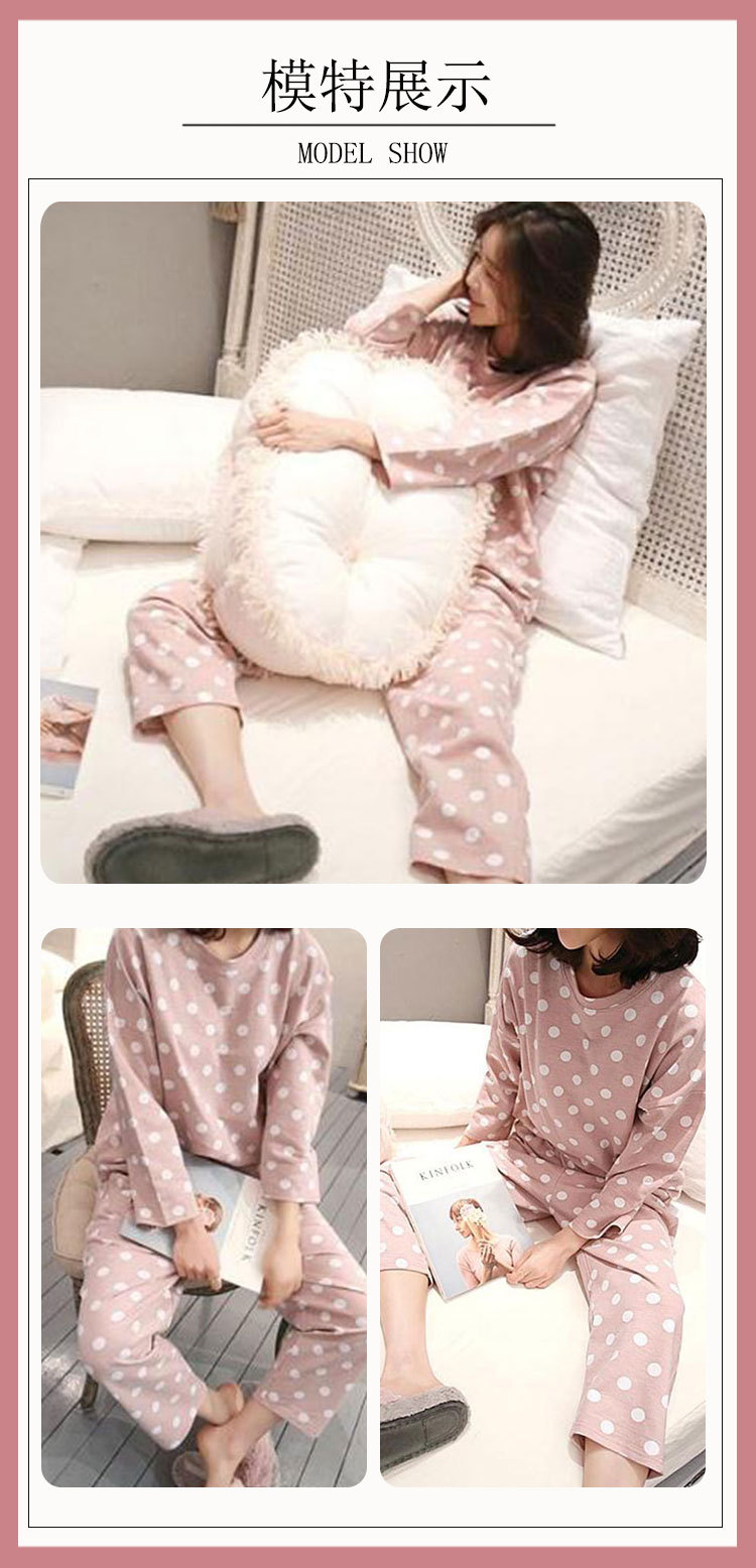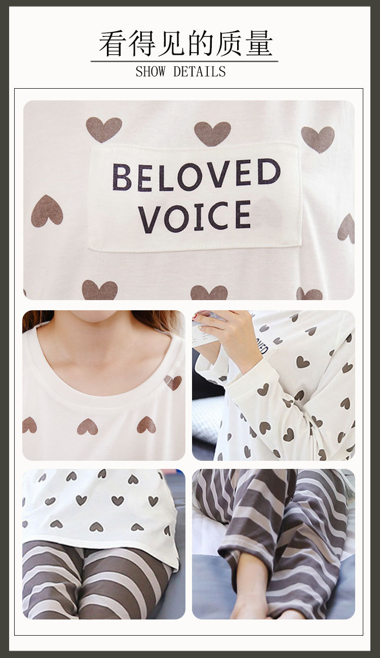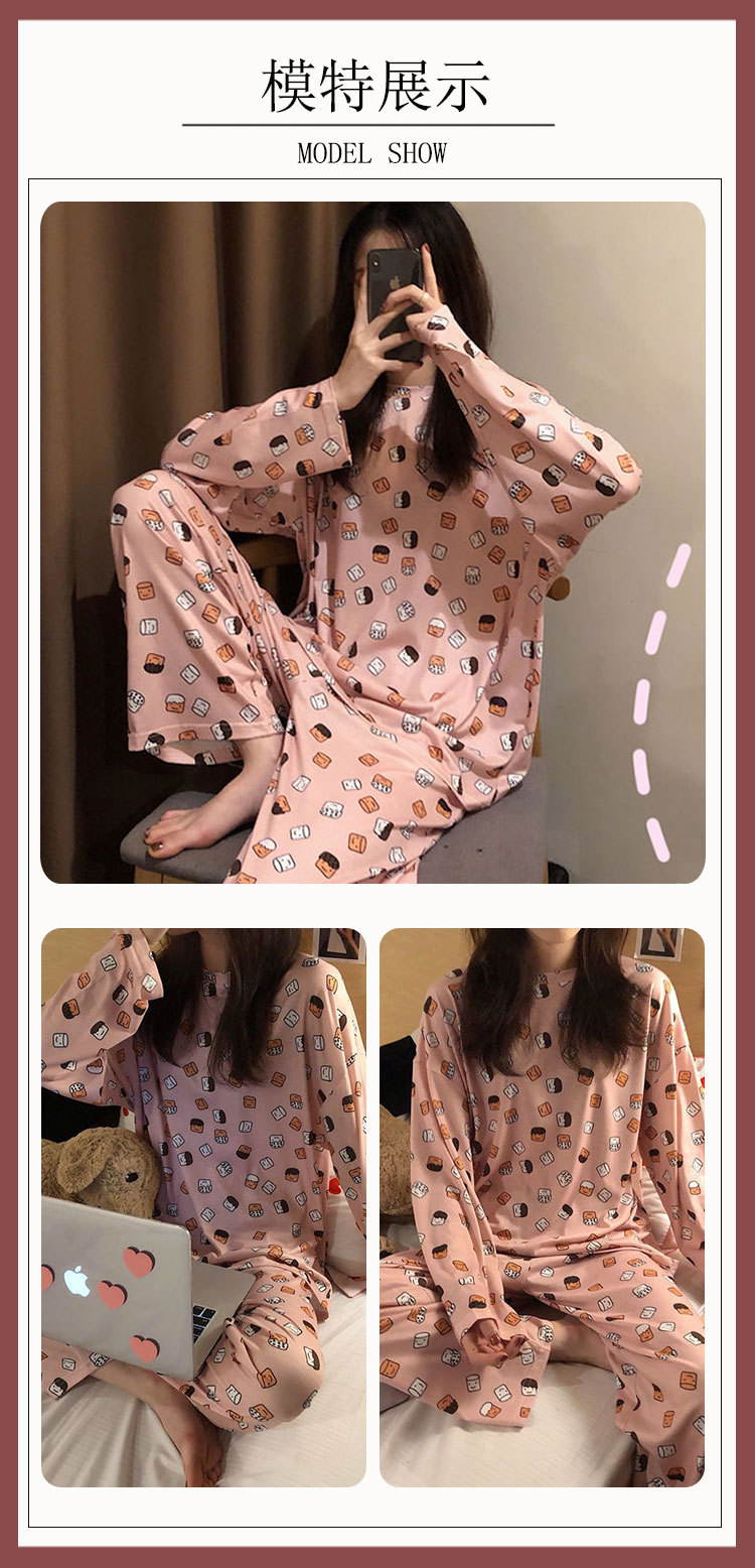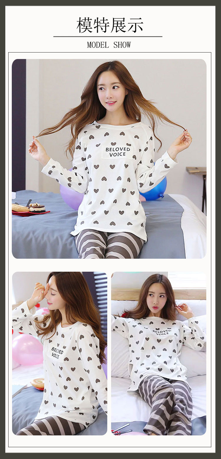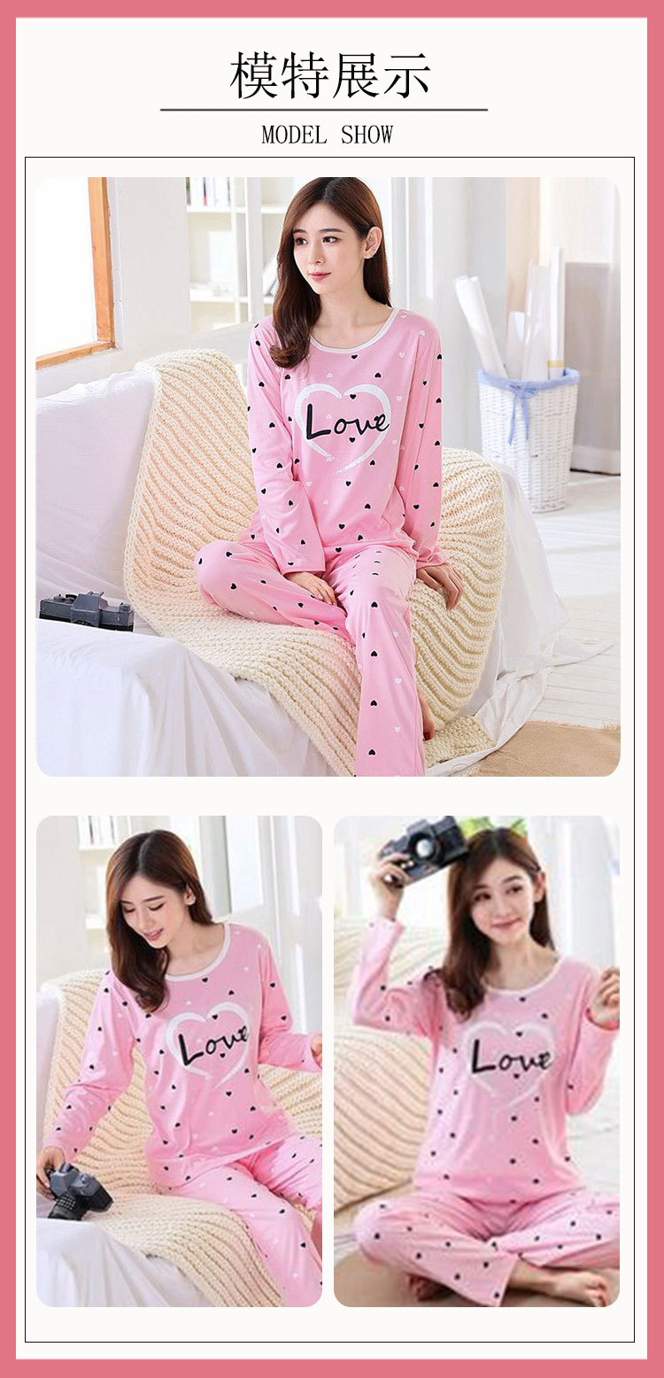 외국 무역용 작은 하트 무늬 긴팔 잠옷 여성용 봄 가을 얇은 홈웨어 세트 여름용 일회용 여행복