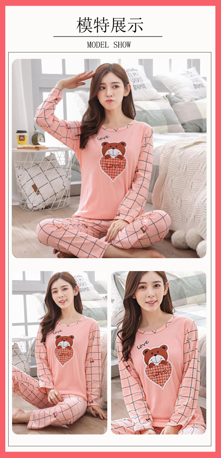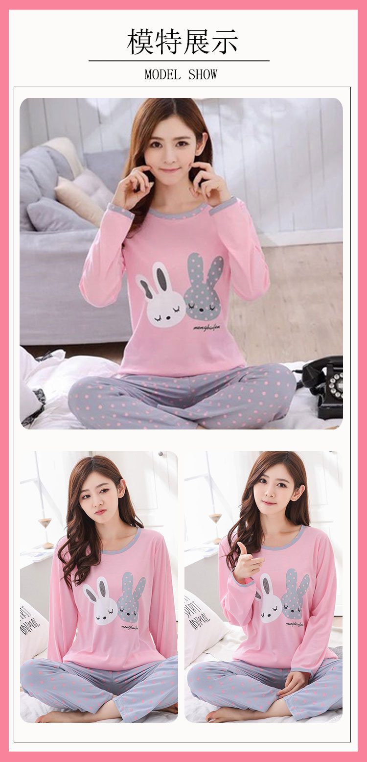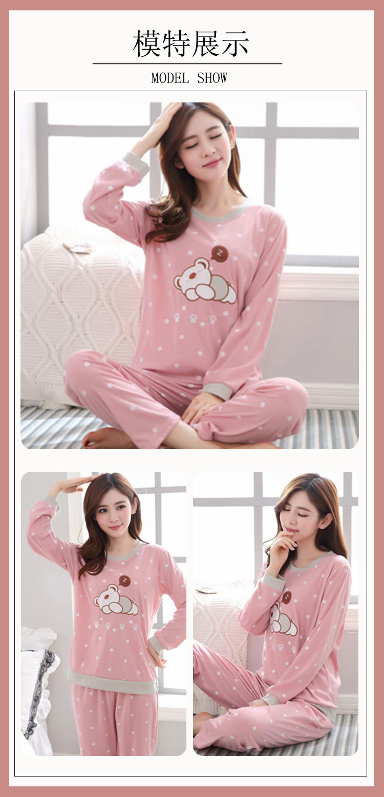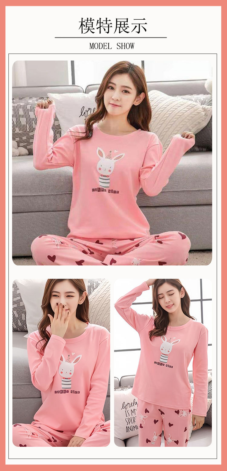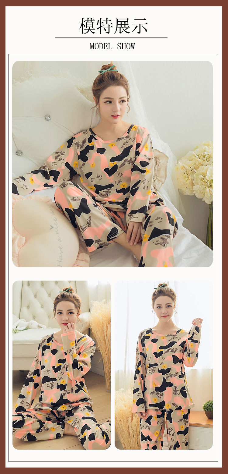 외국 무역용 작은 하트 무늬 긴팔 잠옷 여성용 봄 가을 얇은 홈웨어 세트 여름용 일회용 여행복