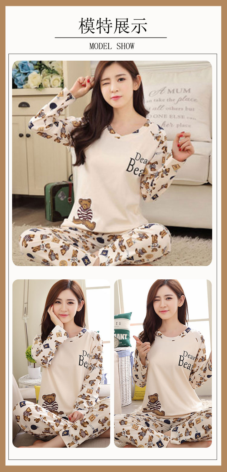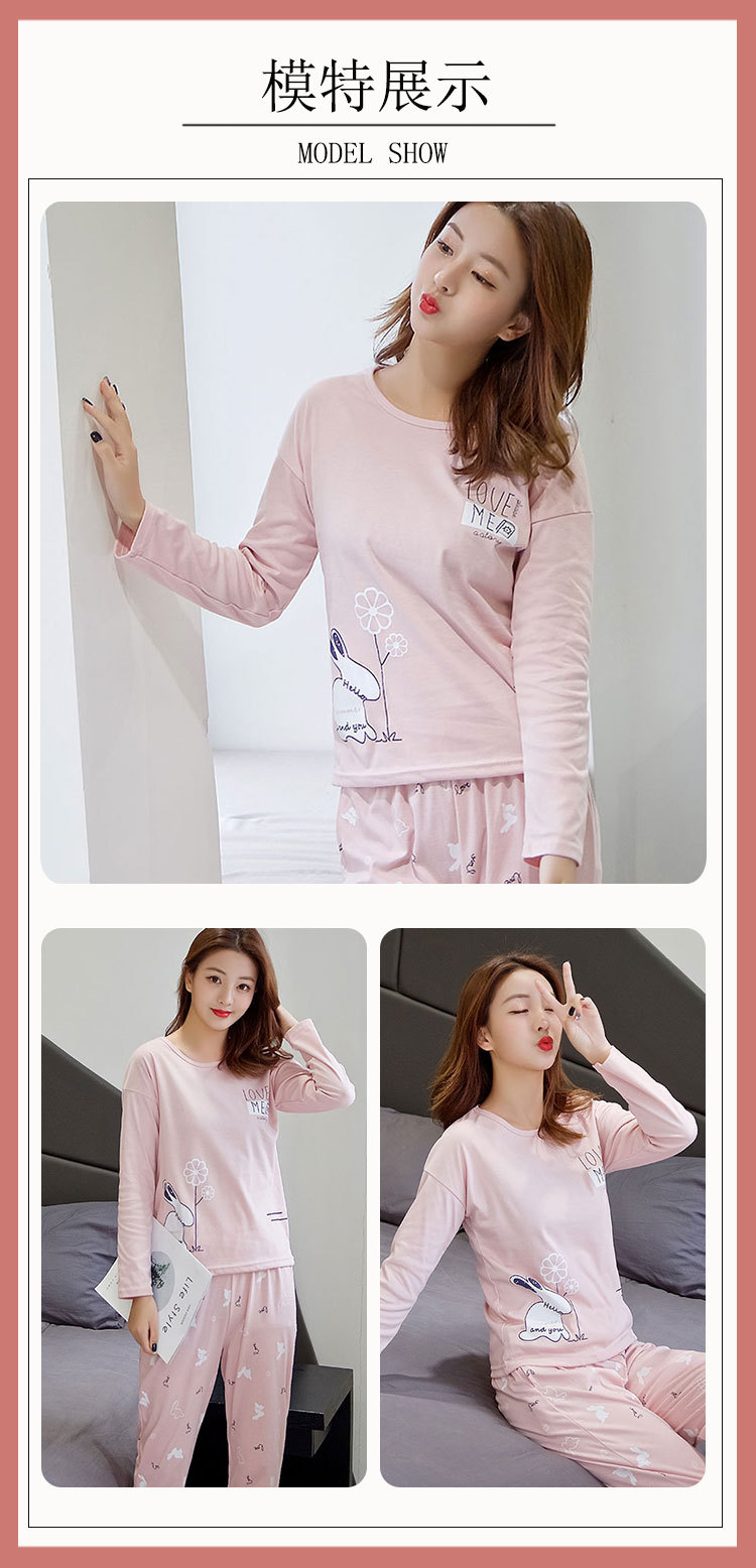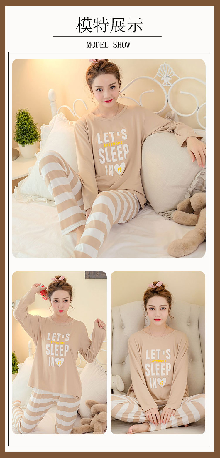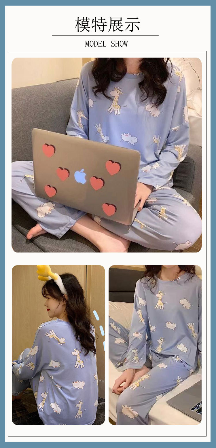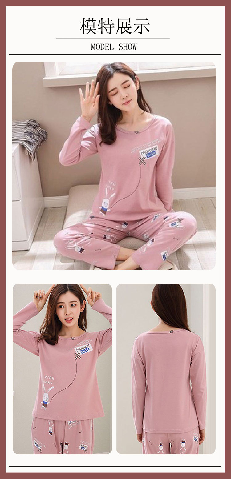 외국 무역용 작은 하트 무늬 긴팔 잠옷 여성용 봄 가을 얇은 홈웨어 세트 여름용 일회용 여행복