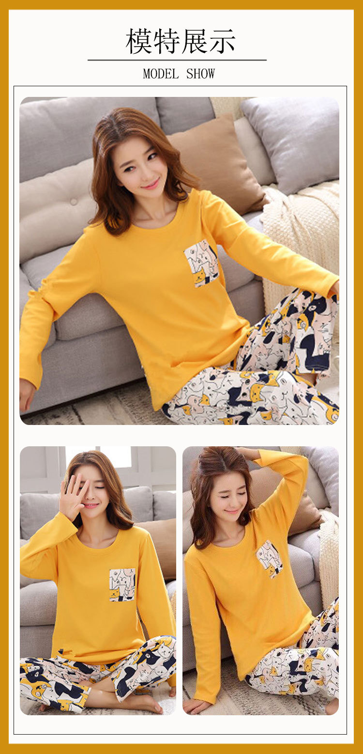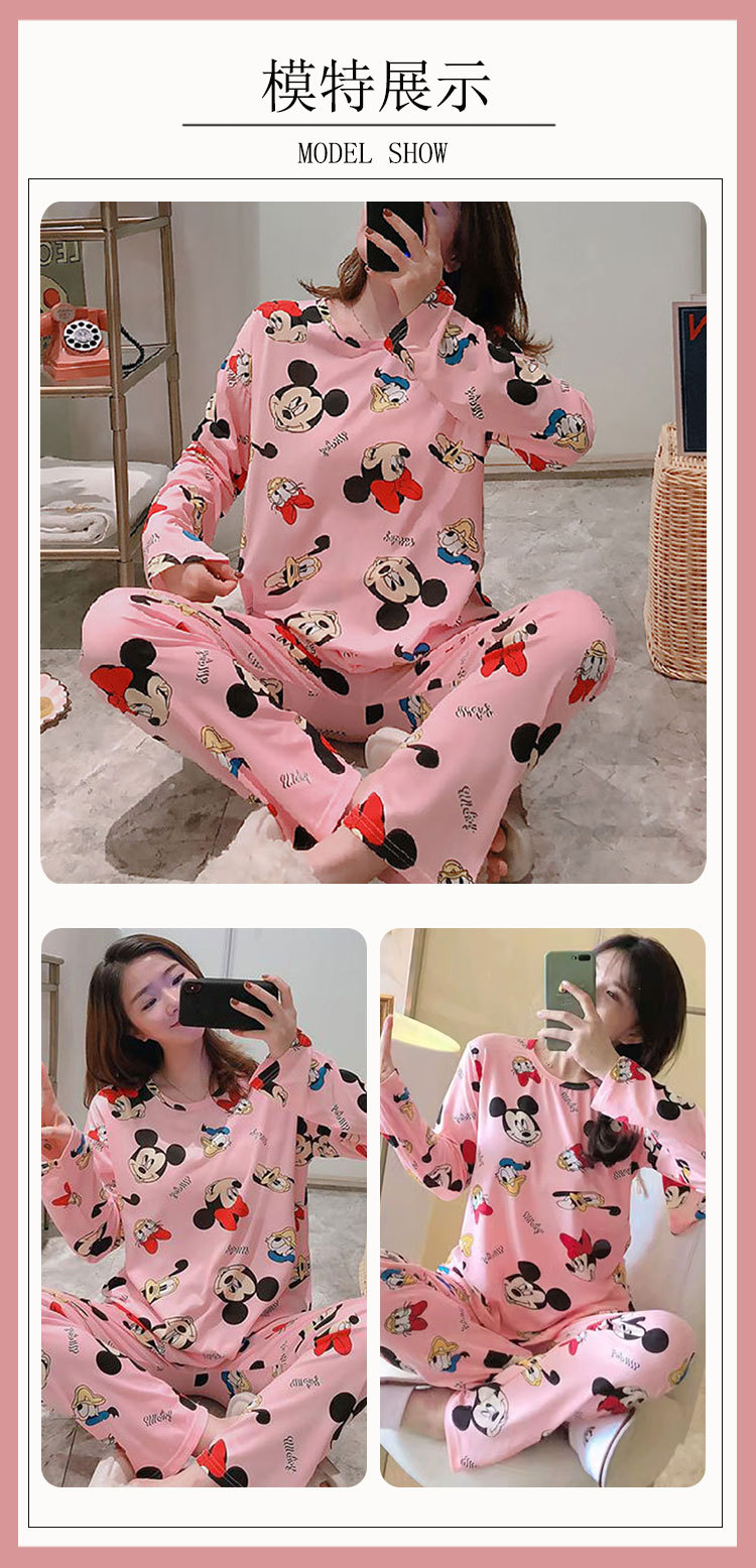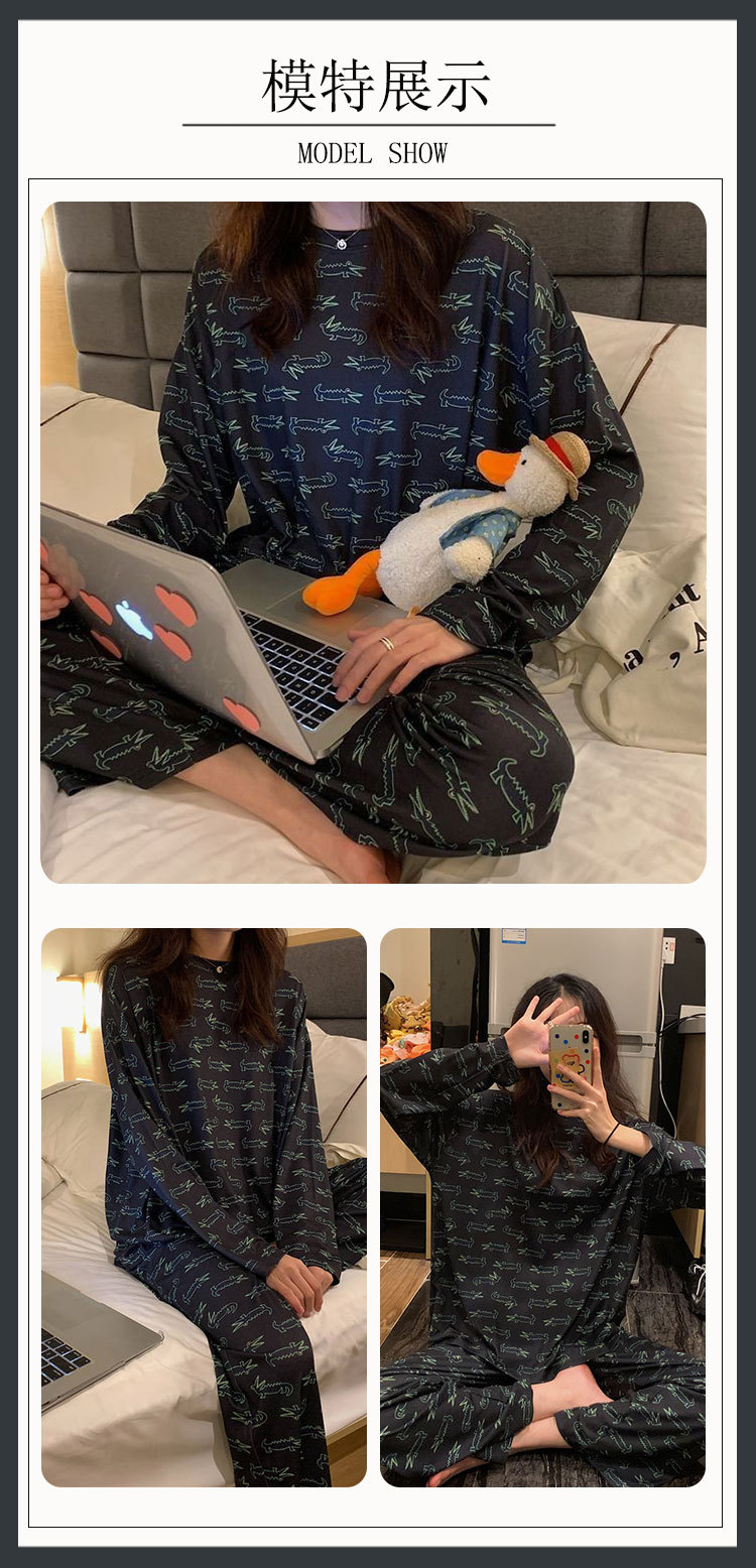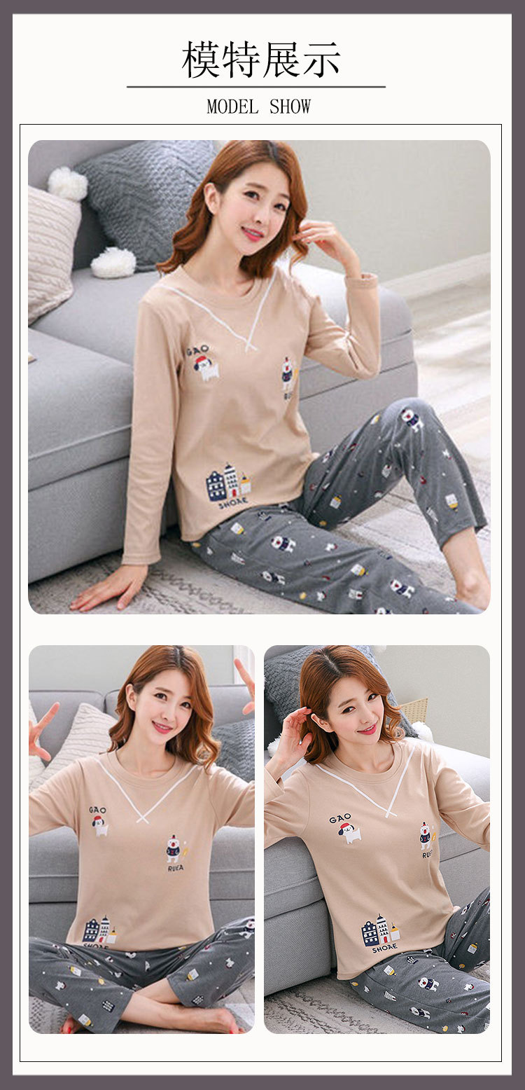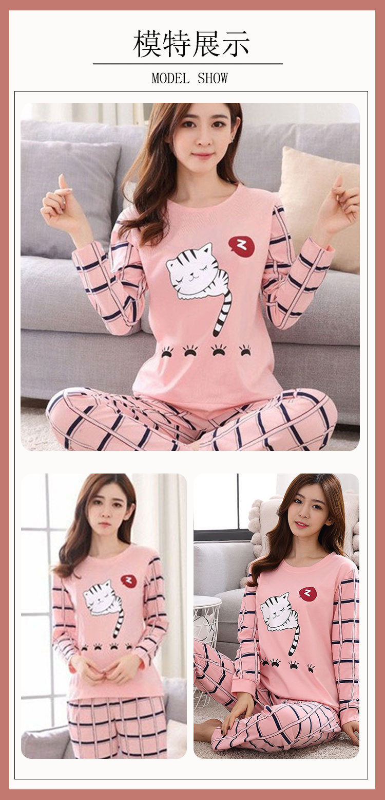 외국 무역용 작은 하트 무늬 긴팔 잠옷 여성용 봄 가을 얇은 홈웨어 세트 여름용 일회용 여행복