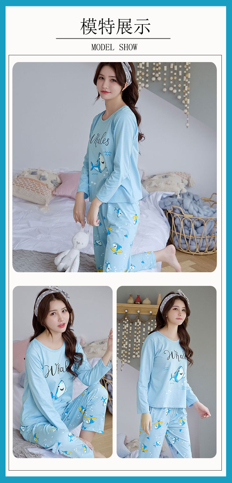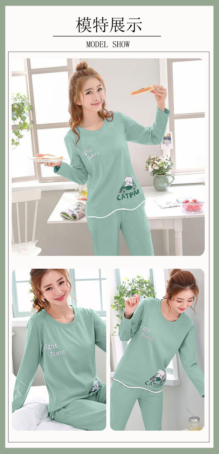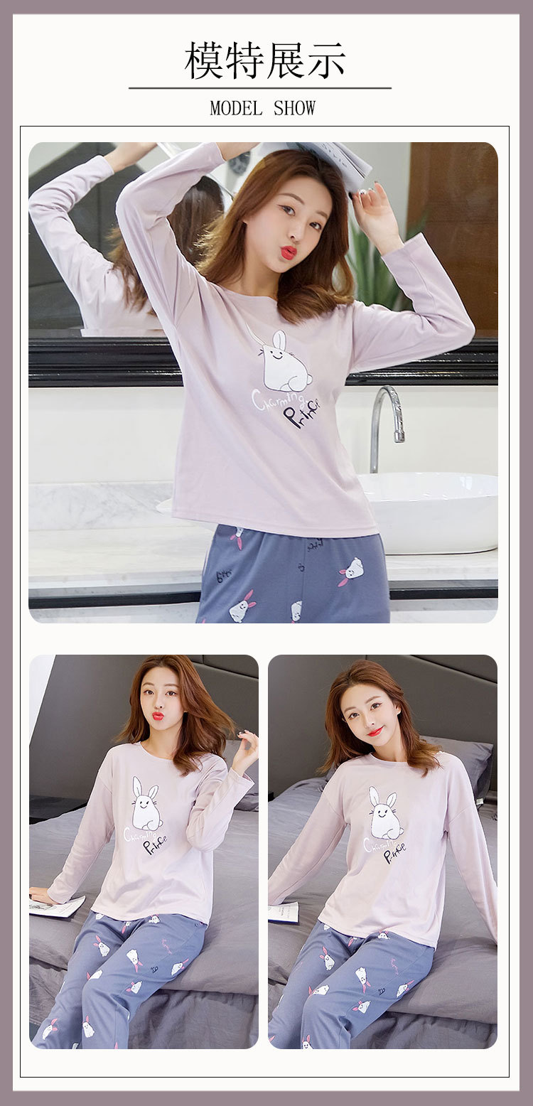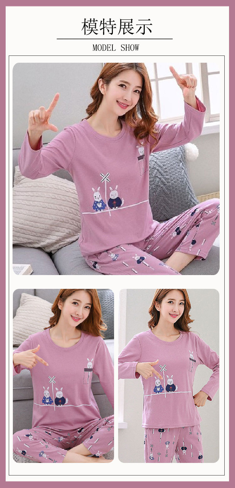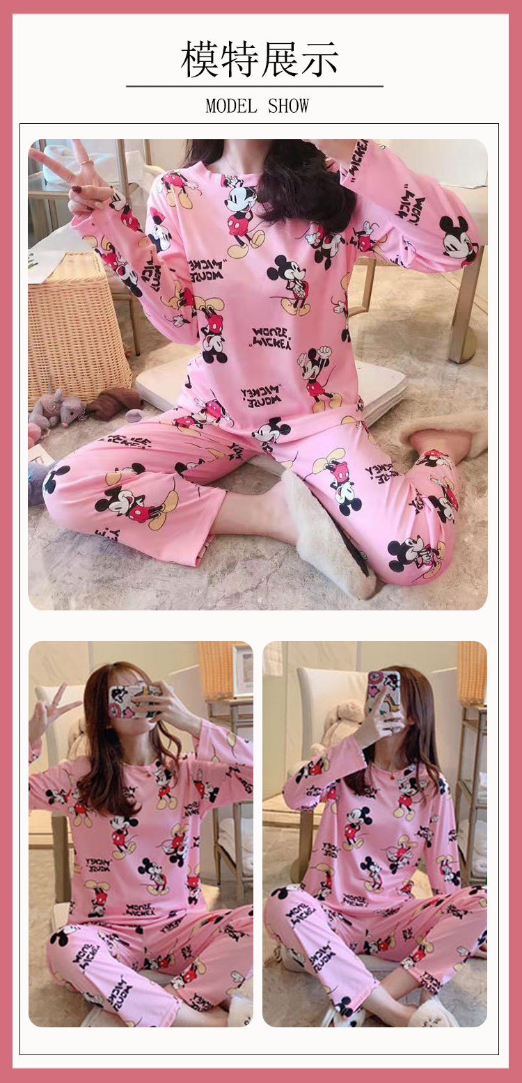 외국 무역용 작은 하트 무늬 긴팔 잠옷 여성용 봄 가을 얇은 홈웨어 세트 여름용 일회용 여행복