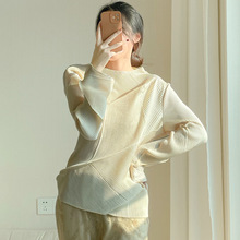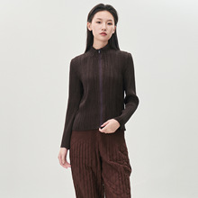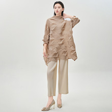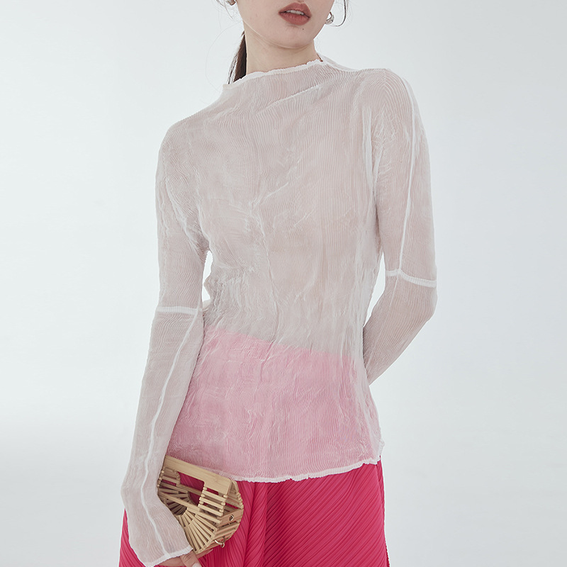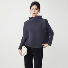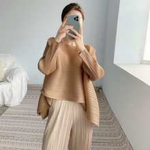 Miyake 카운터 탑 여성 디자인 주름 봄 여름 새로운 초박형 자외선 차단 셔츠 하이 칼라 티셔츠 바닥 셔츠 긴 소매