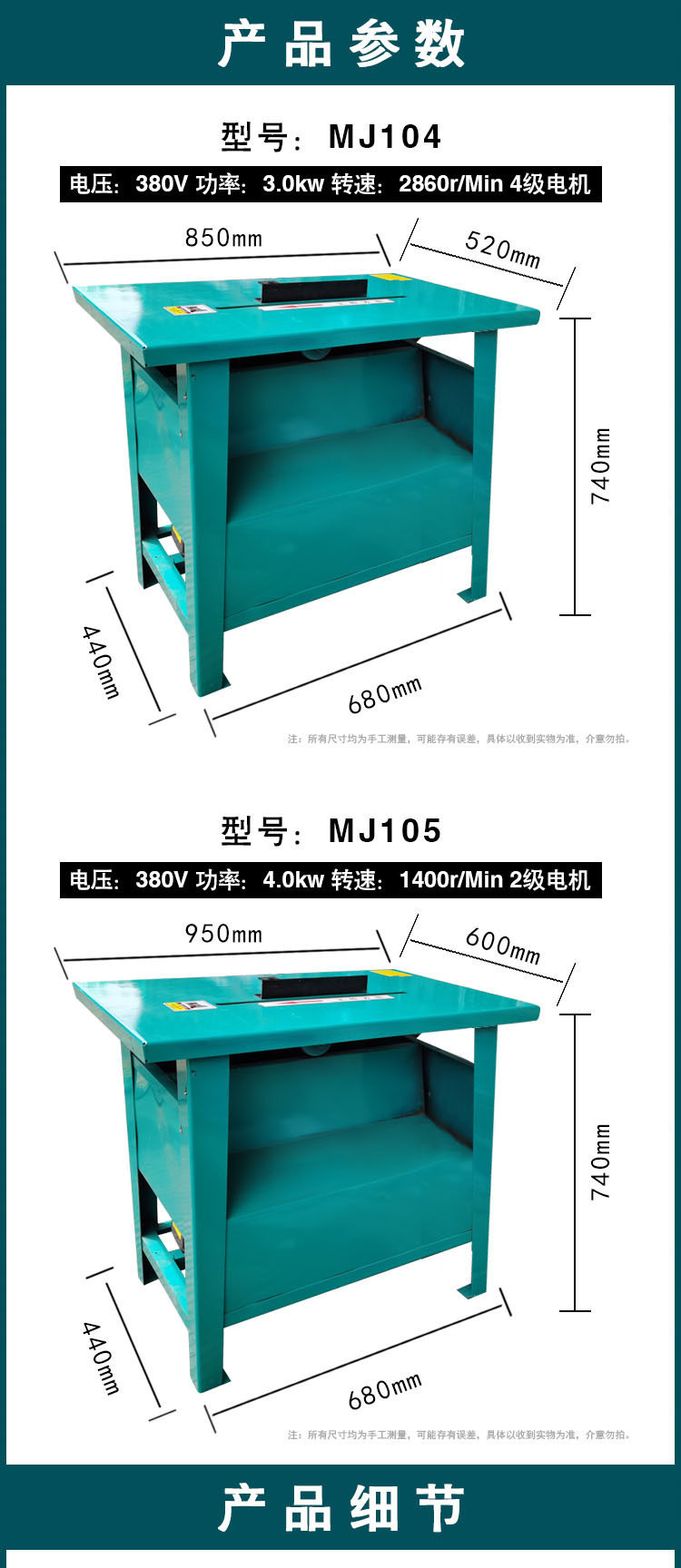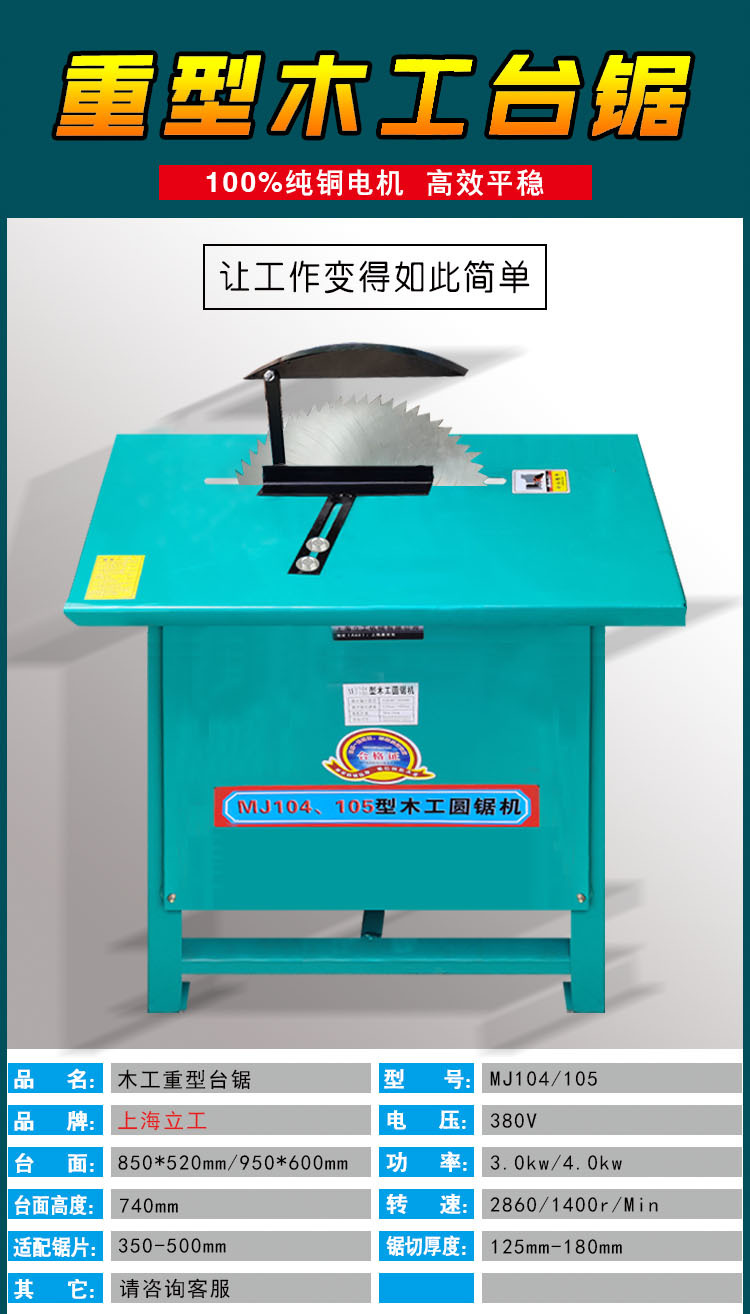 헤비 듀티 테이블 톱 4kw, 구리 코어 모터