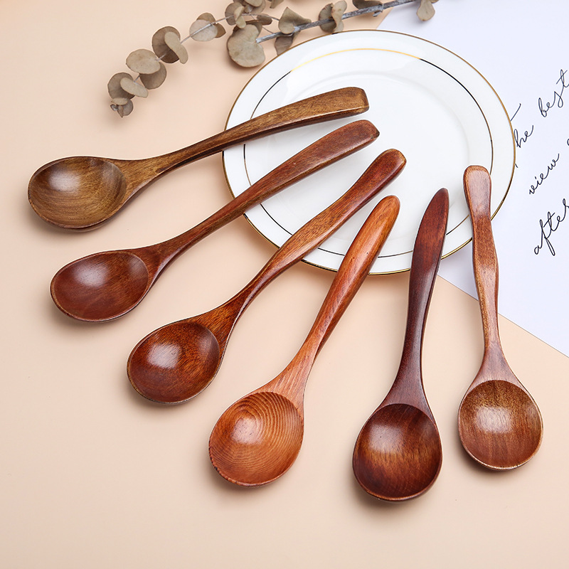 일본식 옻칠 난무 스푼 단단한 나무 수프 스푼 가정용 식기 어린이 잼 스푼 수제 나무 쌀 숟가락 도매