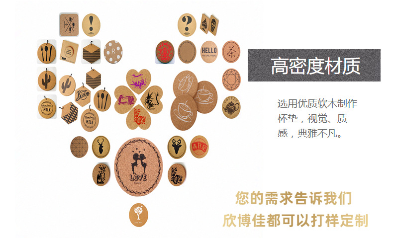 【特别说明】:考虑到客户各种厚度、规格、形状、LOGO印刷等需求用途;我司未能在网络上一一展示说明介绍,定制软木杯垫需求可以提供如:图片、样品、产品要求,我司将竭诚为你提供所需的产品打样。