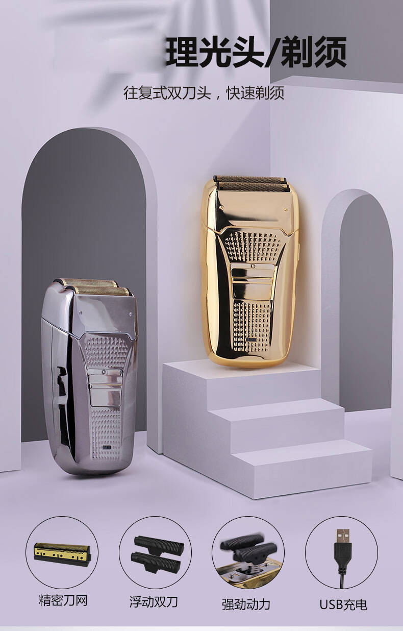 2.经典往复式双刀网设计,刀头服帖,剃须不残留