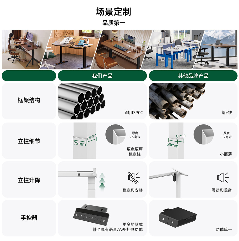 인체 공학적 전기 리프팅 책상 학생 앉아 대체 학습 책상 직원 사무실 컴퓨터 책상
