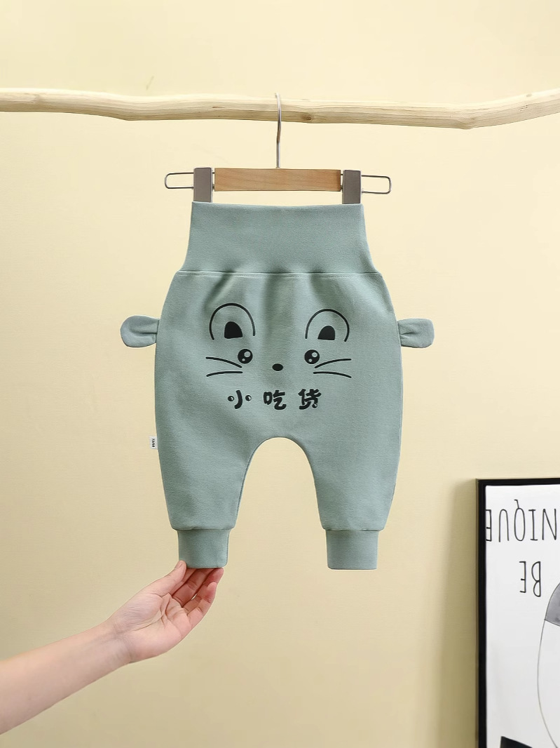 2025 아기 바지 가을, 겨울 소년과 소녀를위한 새로운 두꺼운 캐주얼 바지 대형 pp 바지 아기 높은 허리 배꼽 보호 바지 유행