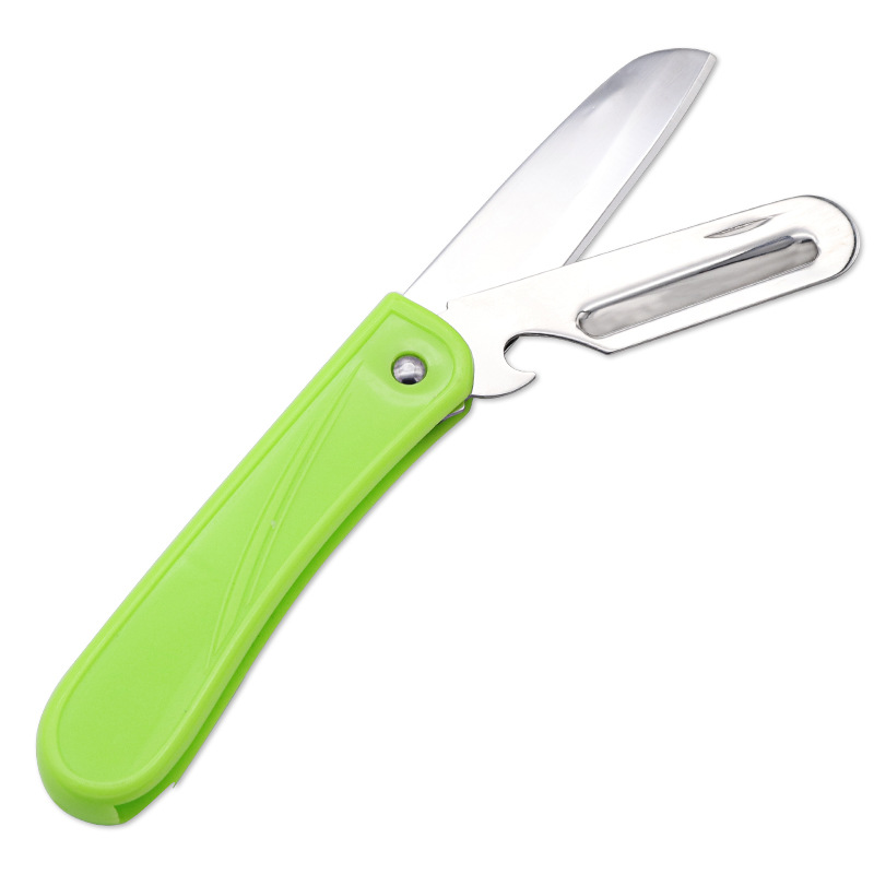스테인리스 접이식 칼 야외 휴대용 칼 단단하고 날카로운 2-in-1 과일 껍질 벗기기 칼 기숙사 가정용 칼