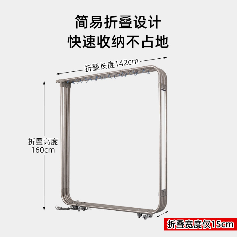 (底部有尼龙绳固定每扇晾晒框,防止晾晒框被大风吹拢到一起而摔倒,可保持整个晾晒架不被大风吹倒)