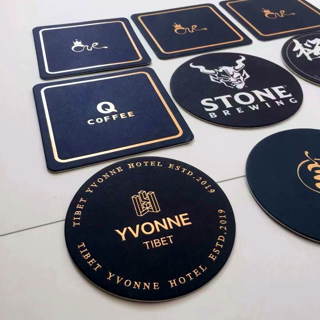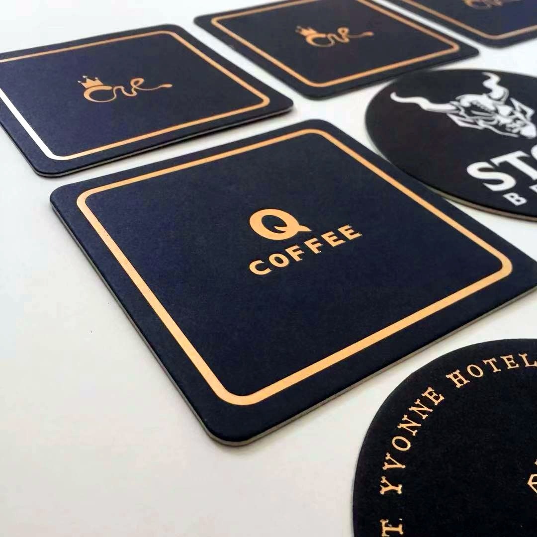 灰纸板杯垫:材质是灰纸板加铜版纸印刷过光胶,价格中等,硬度不错,厚度有2-4mm