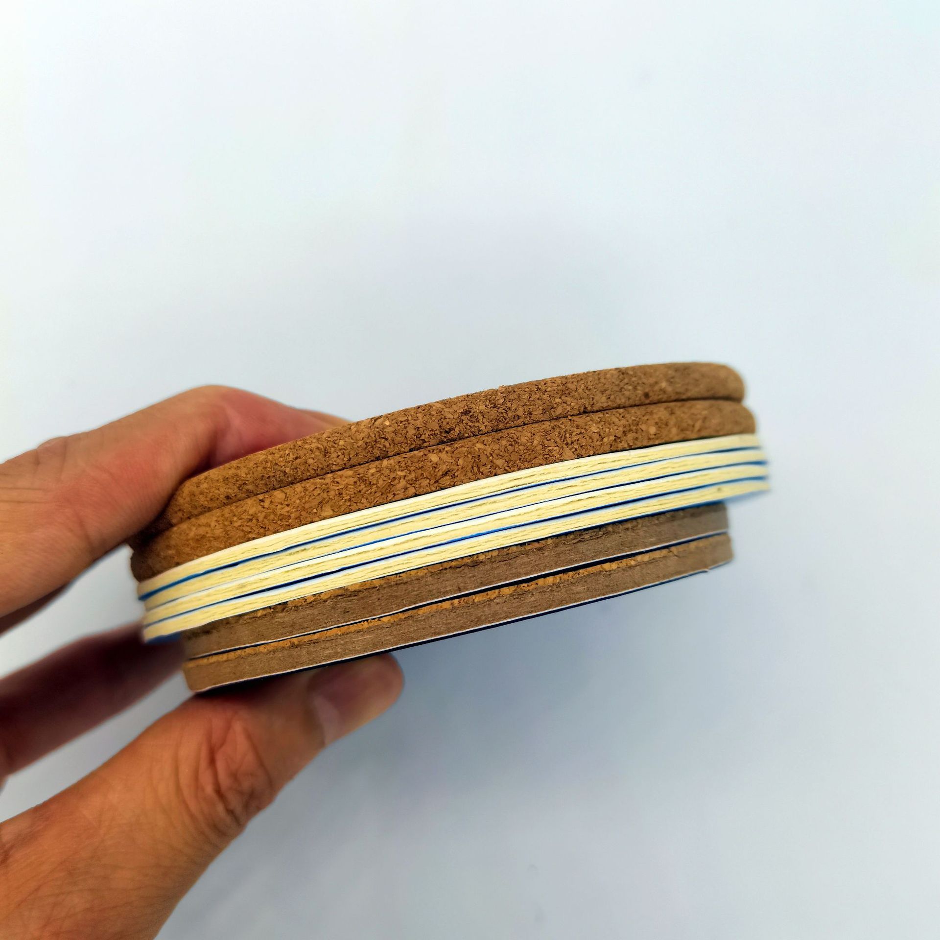 软木杯垫:软木加铜版纸印刷过光胶,价格中等,软木的材质很轻便,很大气,防滑,厚度有2-4mm