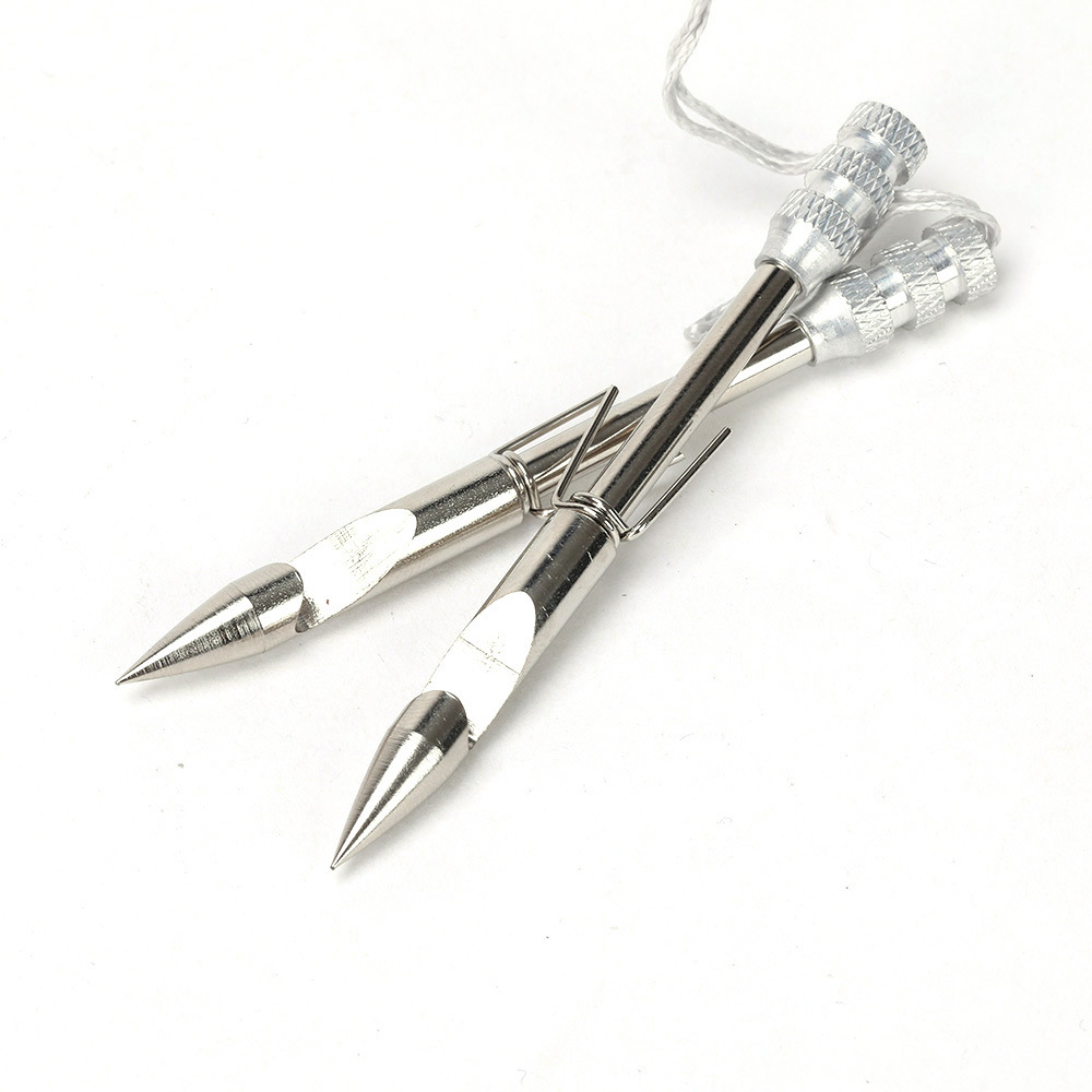 1、本店出售的新款子弹镖、狼牙飞鲨镖、前置飞鲨镖、金鲨镖、三菱飞鲨镖、菱形飞鲨镖、菱形镖、三菱镖,都是1144钢材质,(接近铁一样的材质)有磁性,到水后会轻微生锈,这些镖射鱼性能一般,入水二三十厘米后有可能会拐弯、会跑偏、甚至跳出水面,如果不能掌握它的特性,那就只能打近水面的鱼,深水的打不了。
