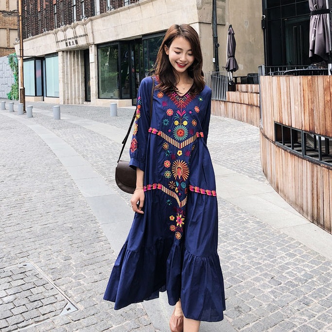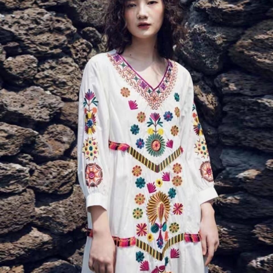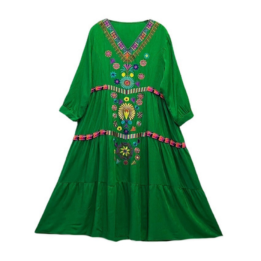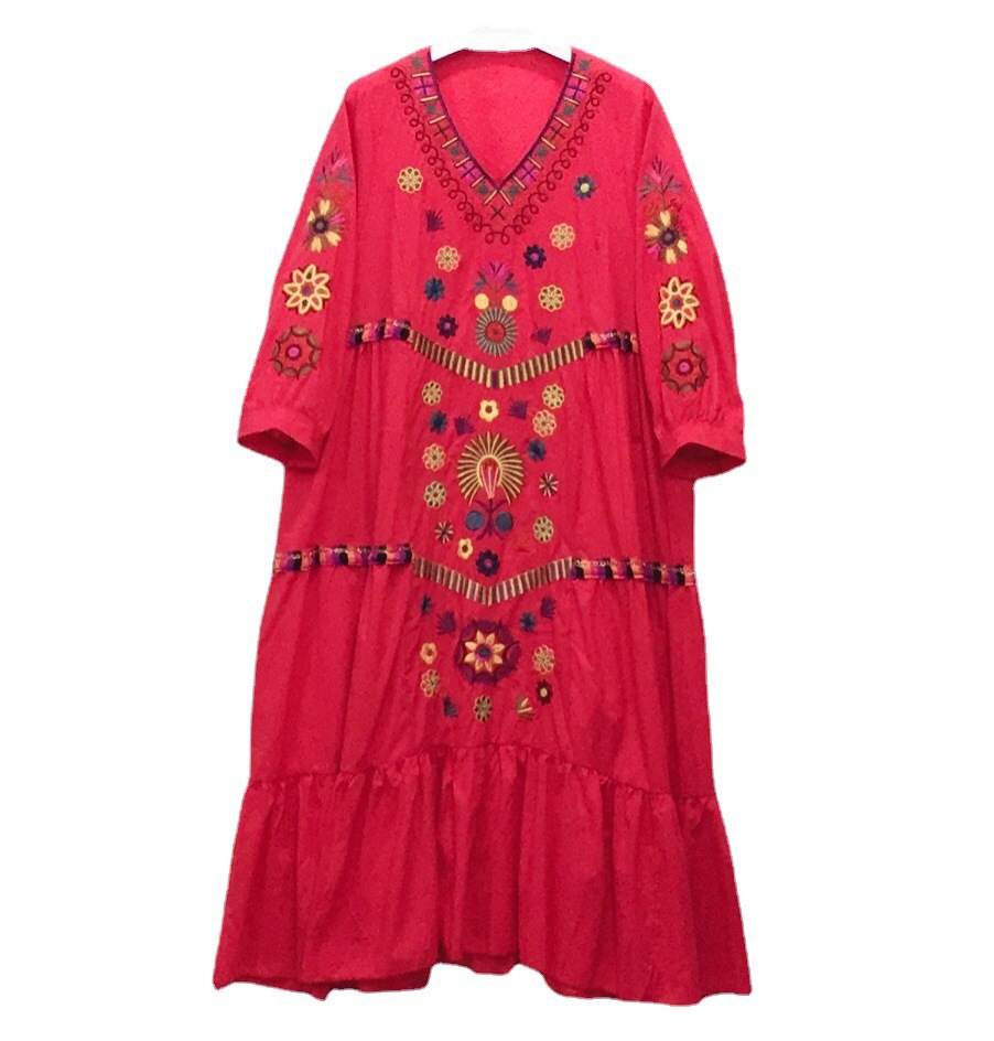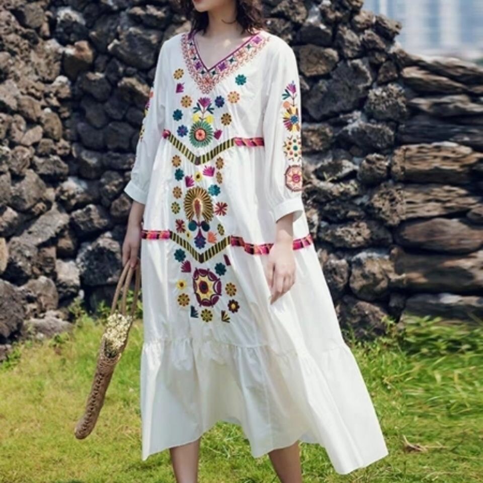 에스닉 스타일 드레스 2026년 신상 태국 스타일 해변 휴가용 슈퍼 롱 드레스 대형 사이즈 루즈핏 캐주얼 비치 드레스