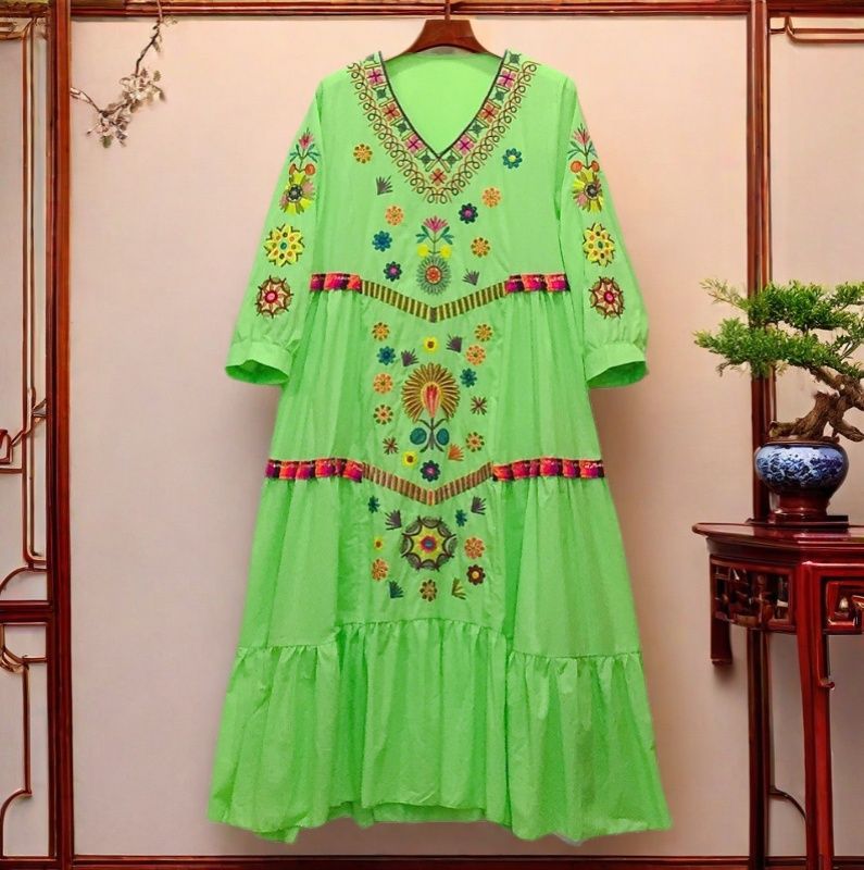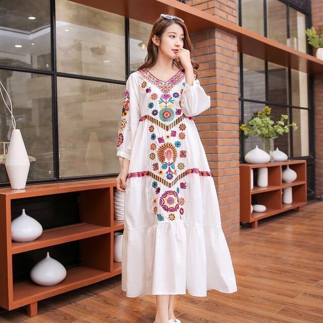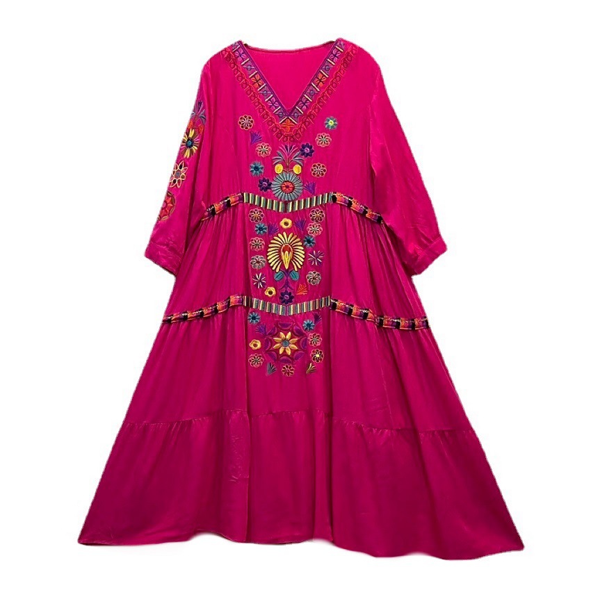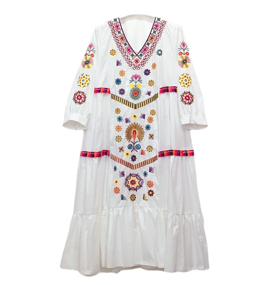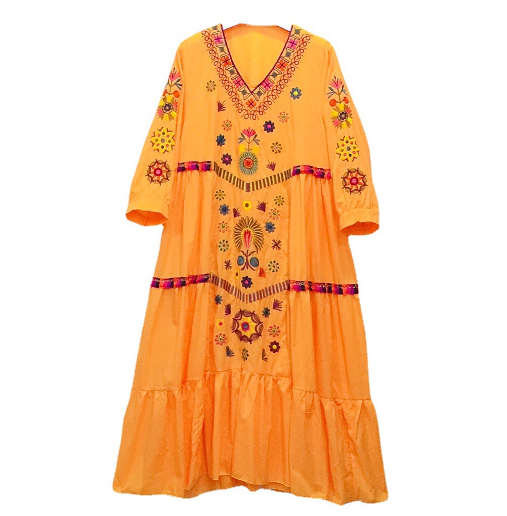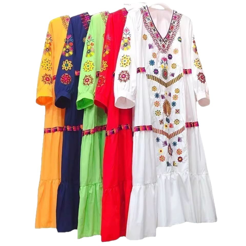 에스닉 스타일 드레스 2026년 신상 태국 스타일 해변 휴가용 슈퍼 롱 드레스 대형 사이즈 루즈핏 캐주얼 비치 드레스