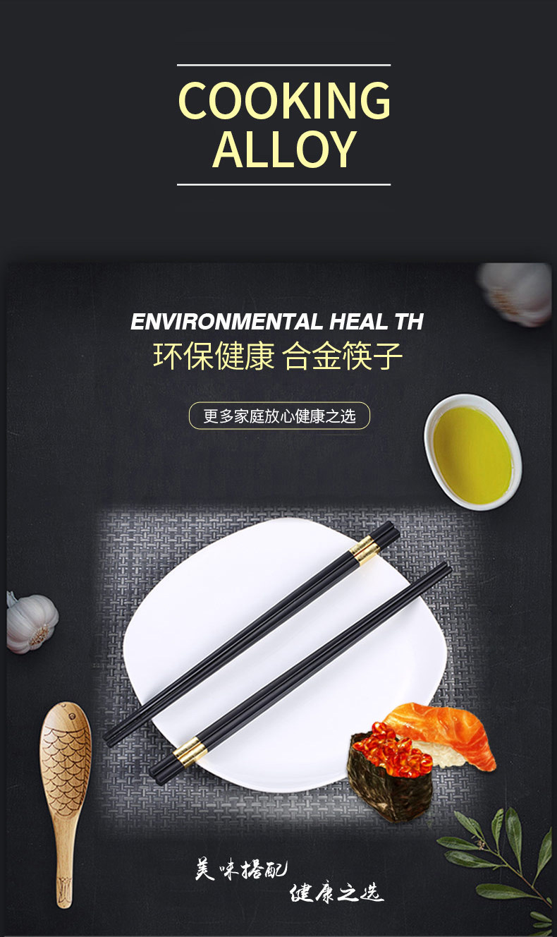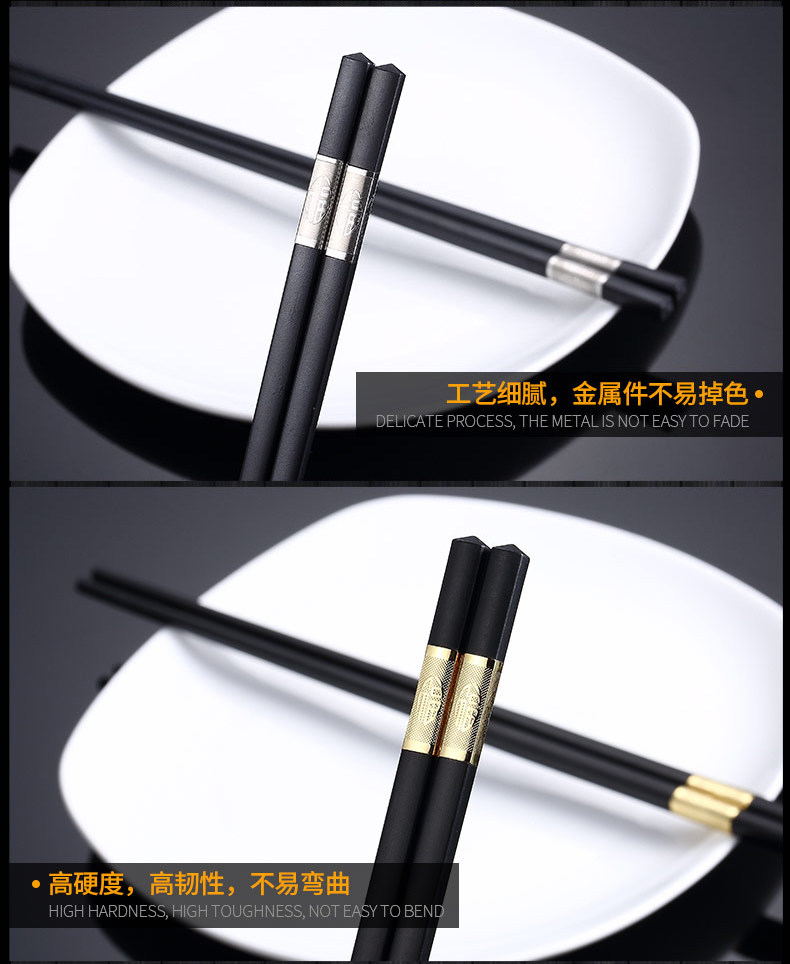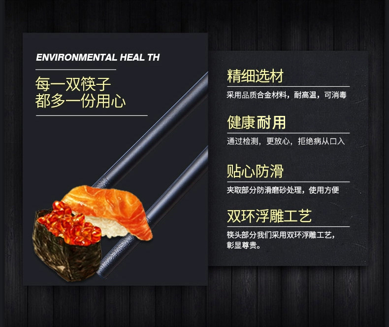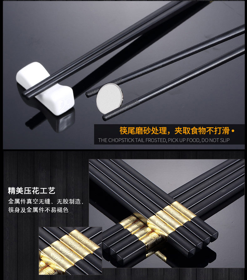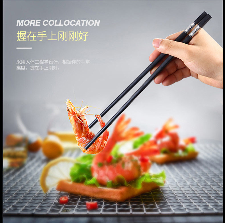 독일어 CCKO 합금 실버 젓가락 가정용 10 쌍 세트 일본식 창조적 인 식기 간단한 미끄럼 방지 검은 젓가락