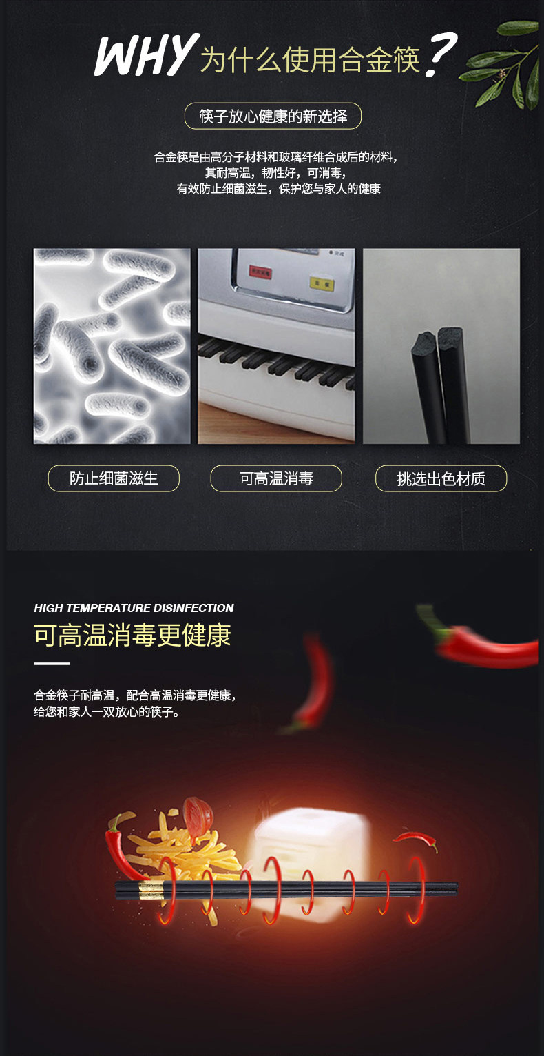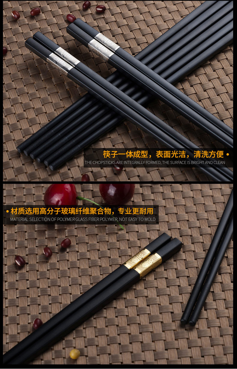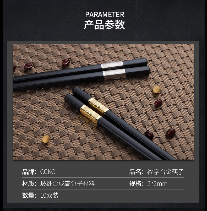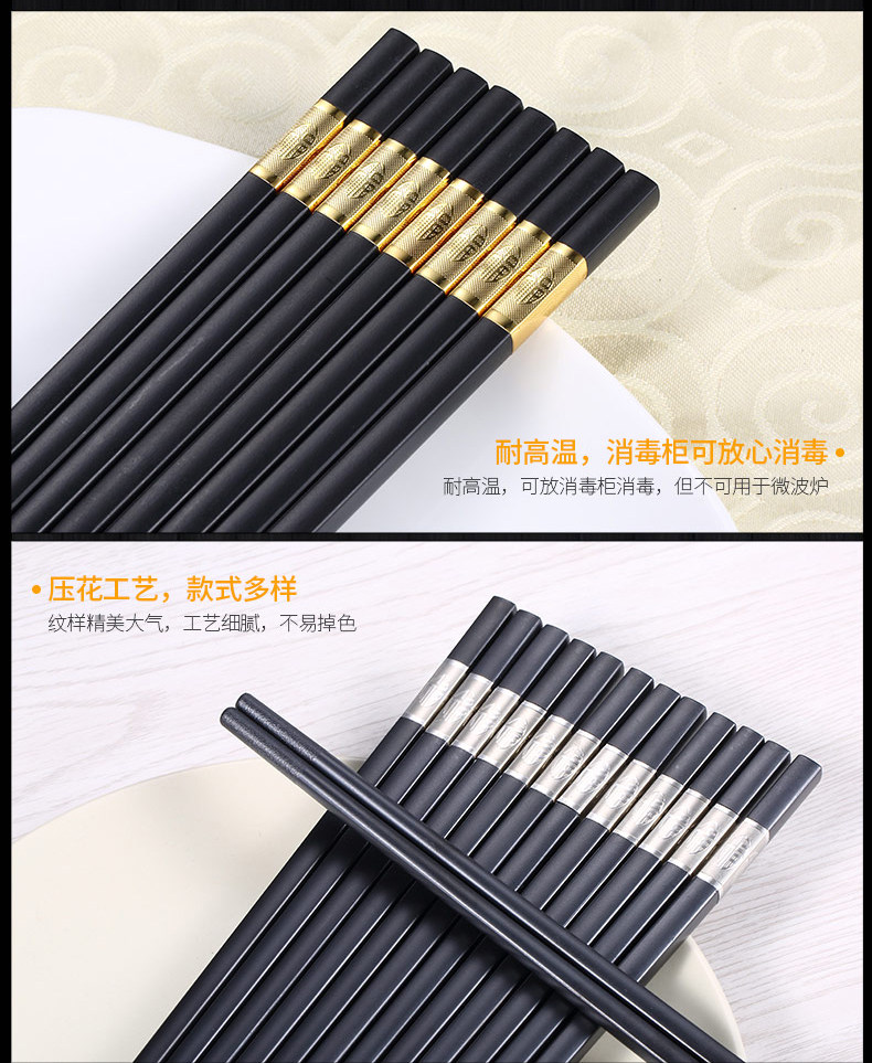 독일어 CCKO 합금 실버 젓가락 가정용 10 쌍 세트 일본식 창조적 인 식기 간단한 미끄럼 방지 검은 젓가락