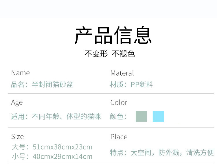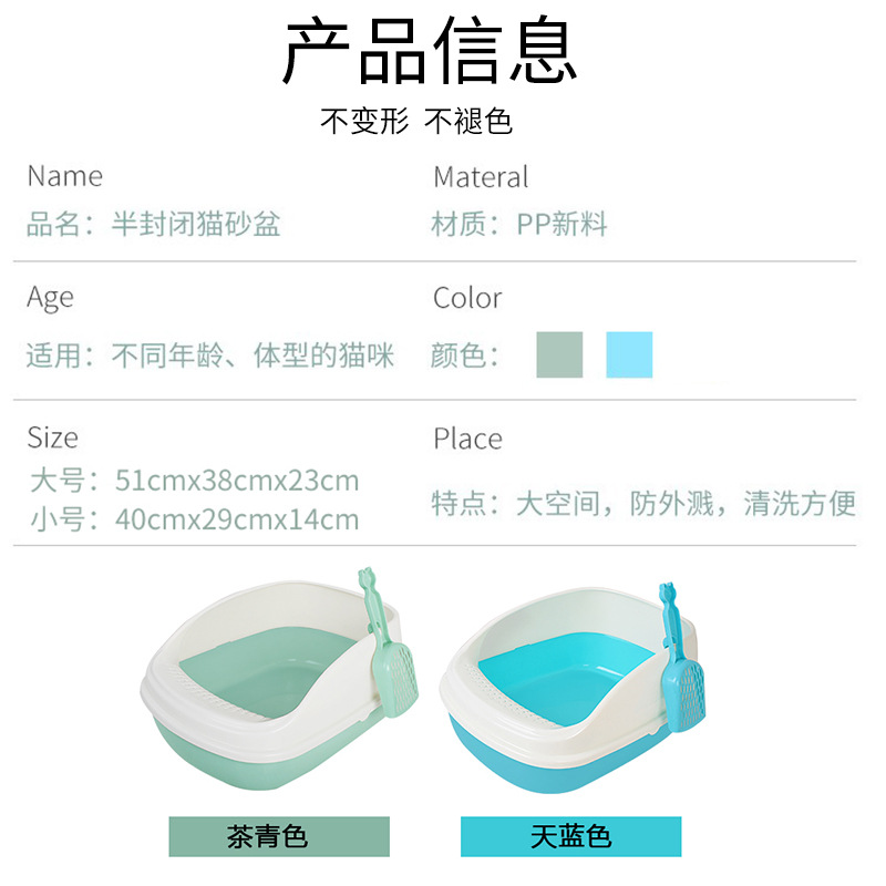 고양이 쓰레기 상자 안티 스플래시 완전 반감기 고양이 화장실 고양이 쓰레기 분지 배달 고양이 쓰레기 삽 스몰 사이즈 고양이 용품