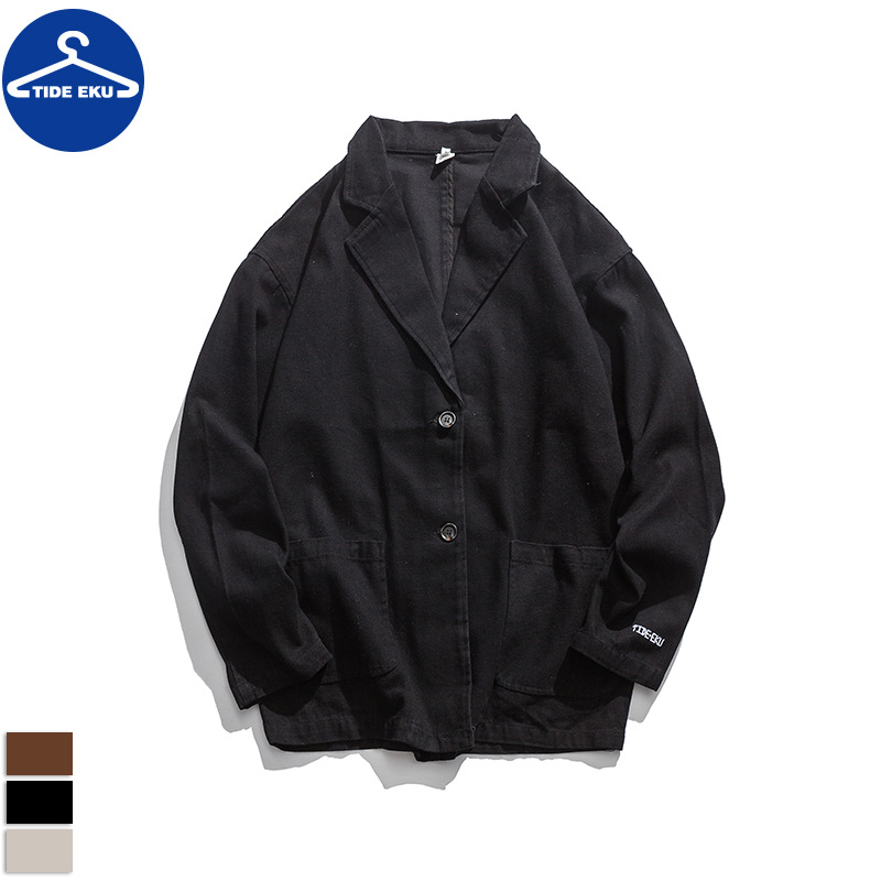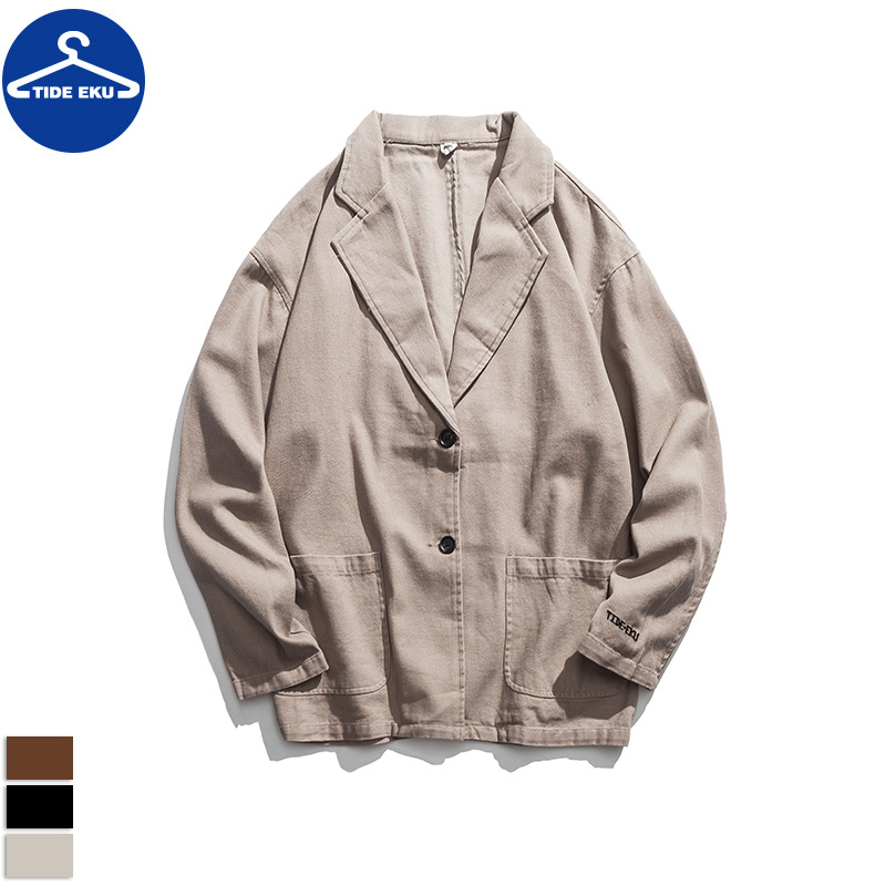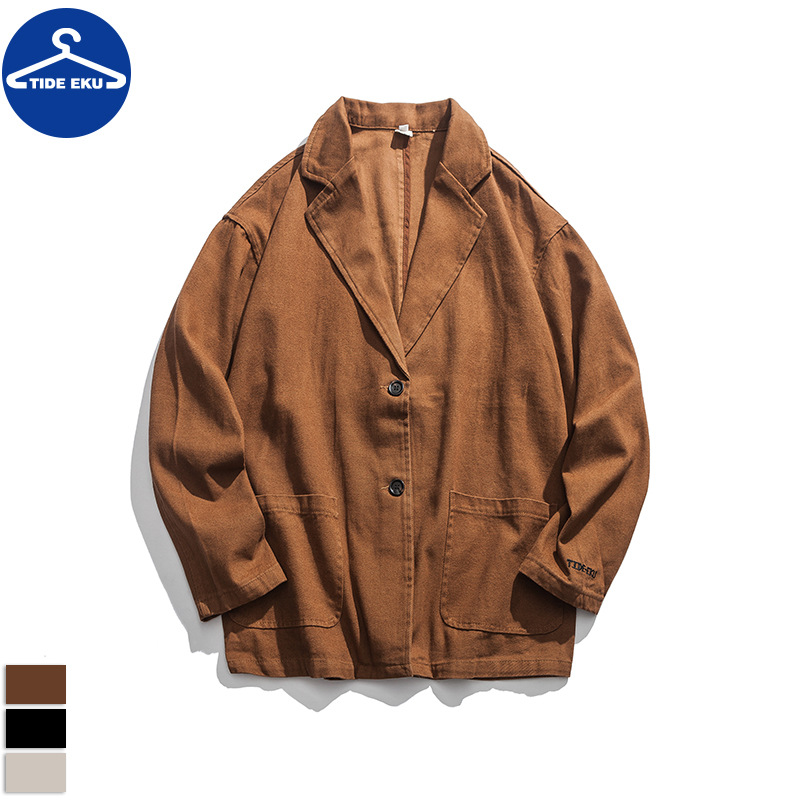 TIDEEKU 라펠 루즈핏 남성 재킷 심플 캐주얼 스타일 카디건 정장 남성 패션 코튼 캐주얼 카디건