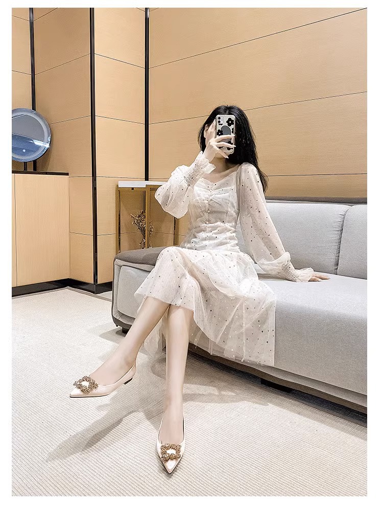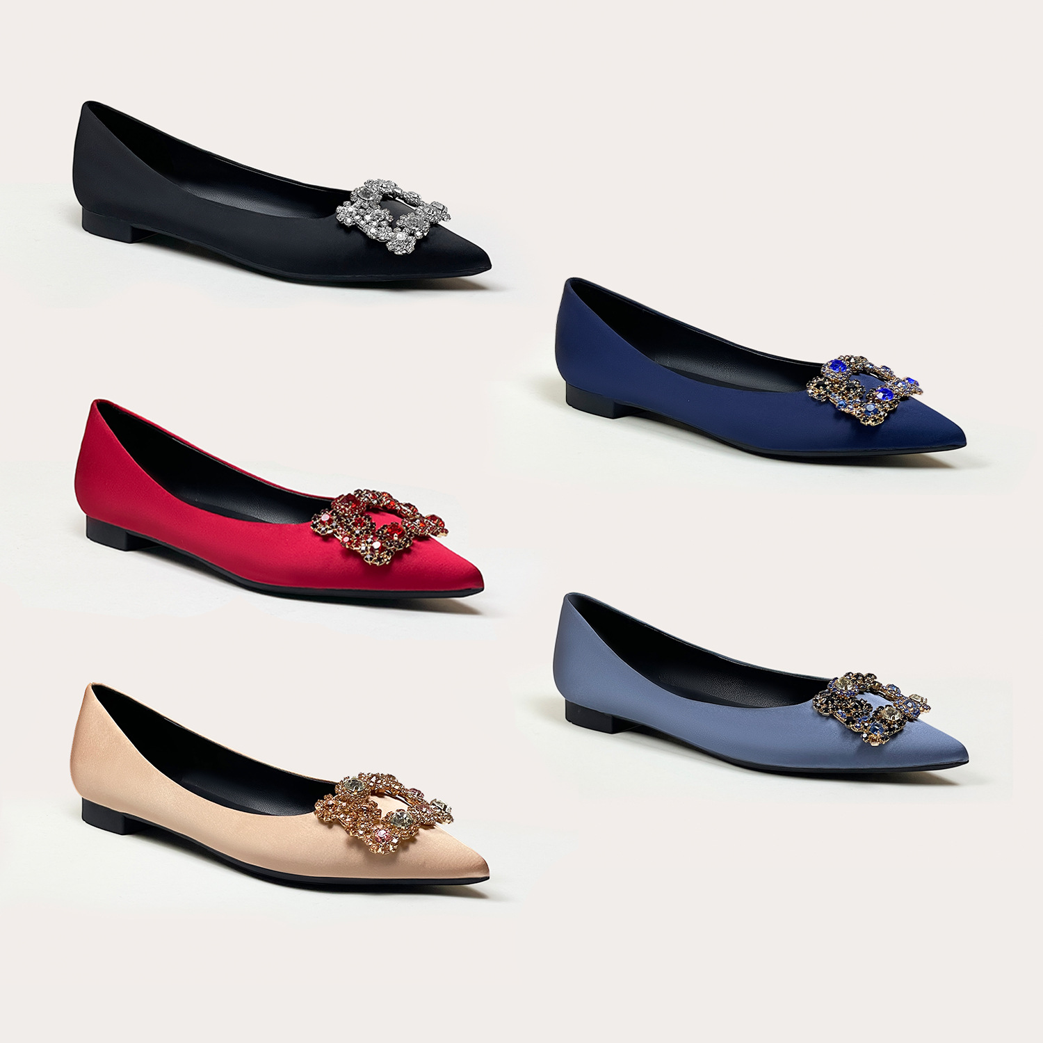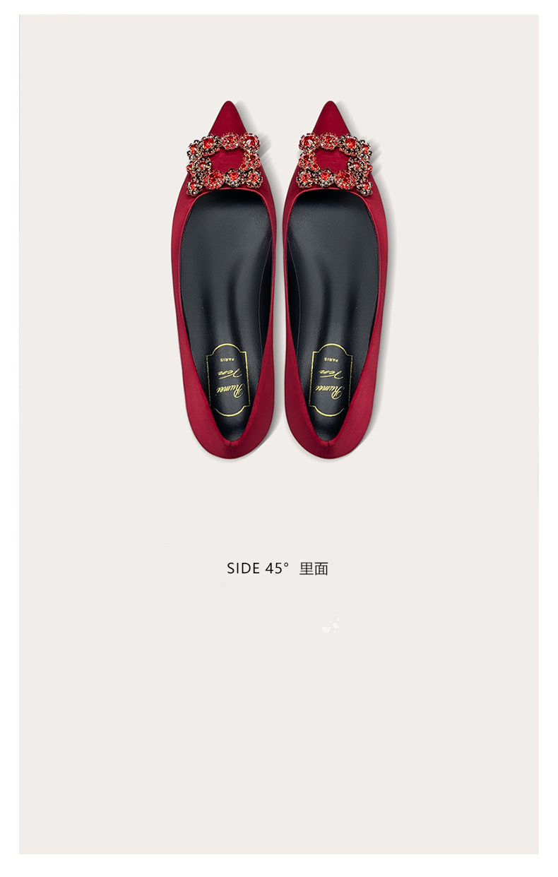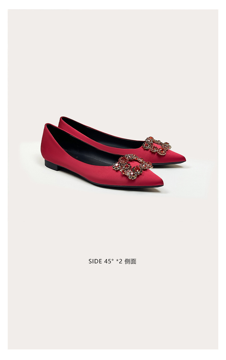 뾰족코 플랫 슈즈 2025 봄 신상 여성화 컬러 다이아몬드 신부 슈즈 워터 다이아몬드 플랫 슈즈 다용도