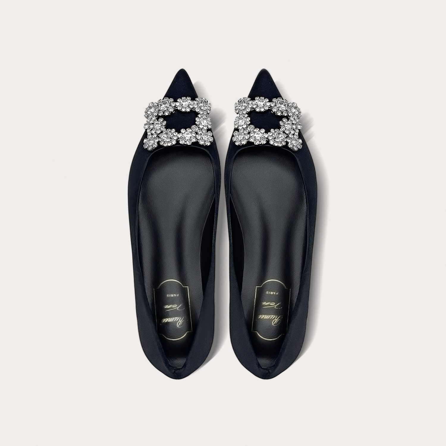 라인스톤 사각 버클 플랫 바닥
