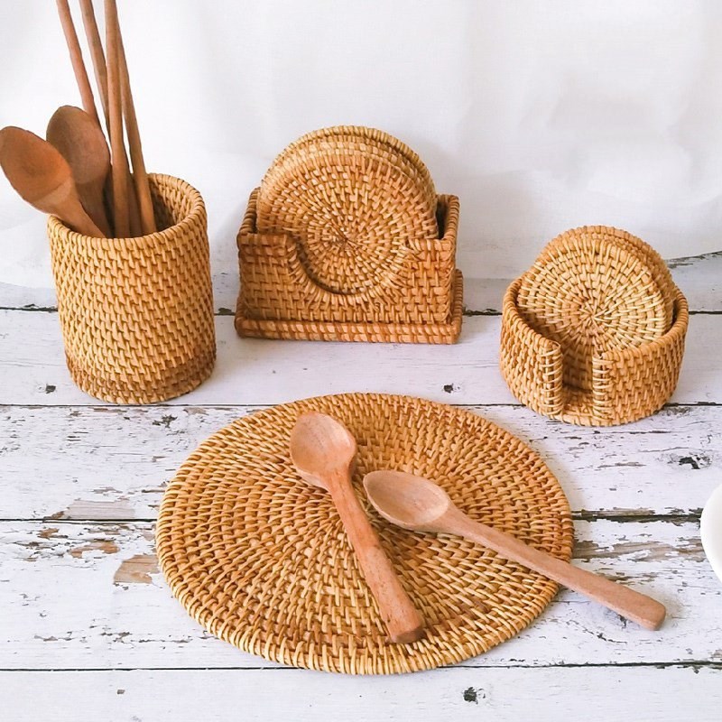 등나무 주전자 코스터 홀더 꼰 다도 크리에이티브 플레이스매트 식탁 매트 그릇 매트 플레이트 매트 단열 매트