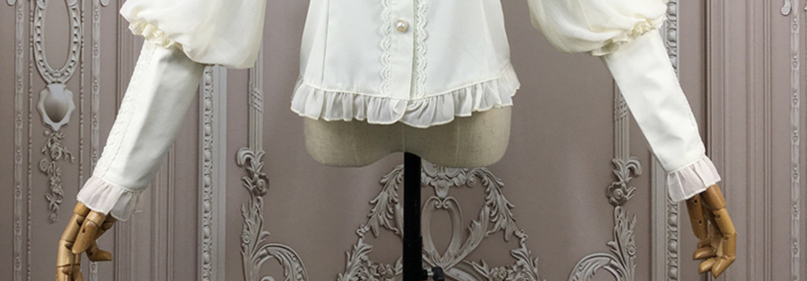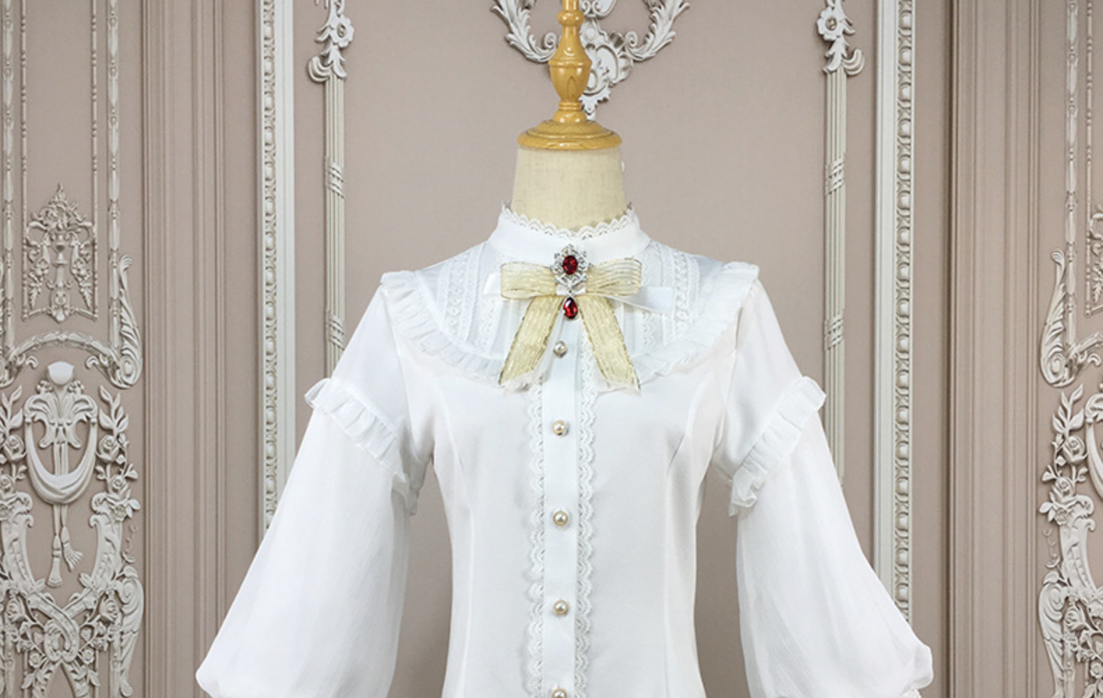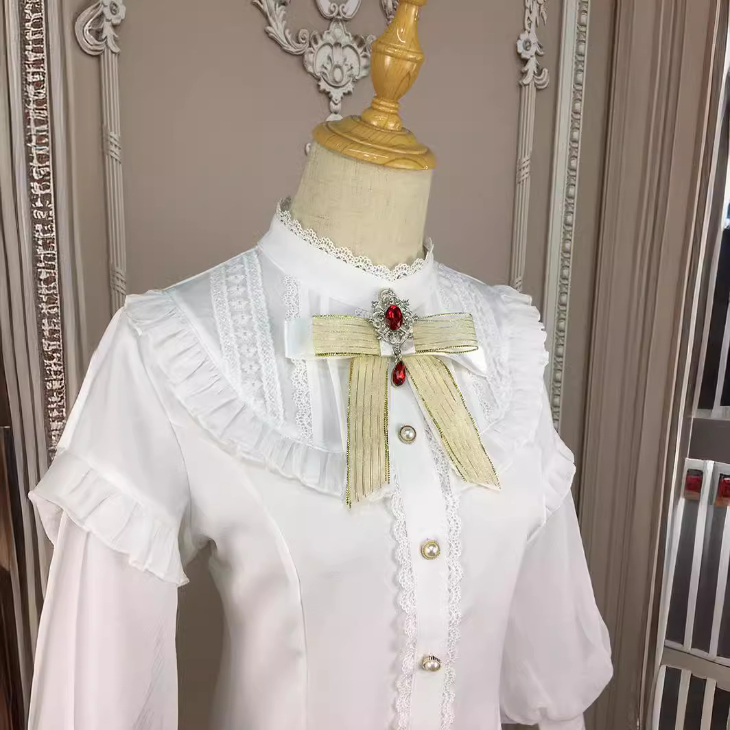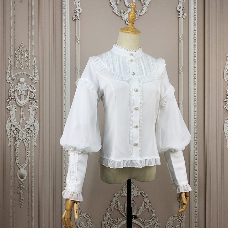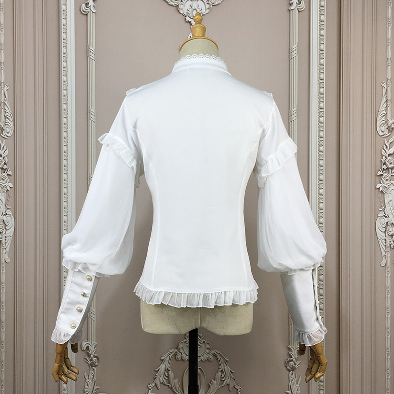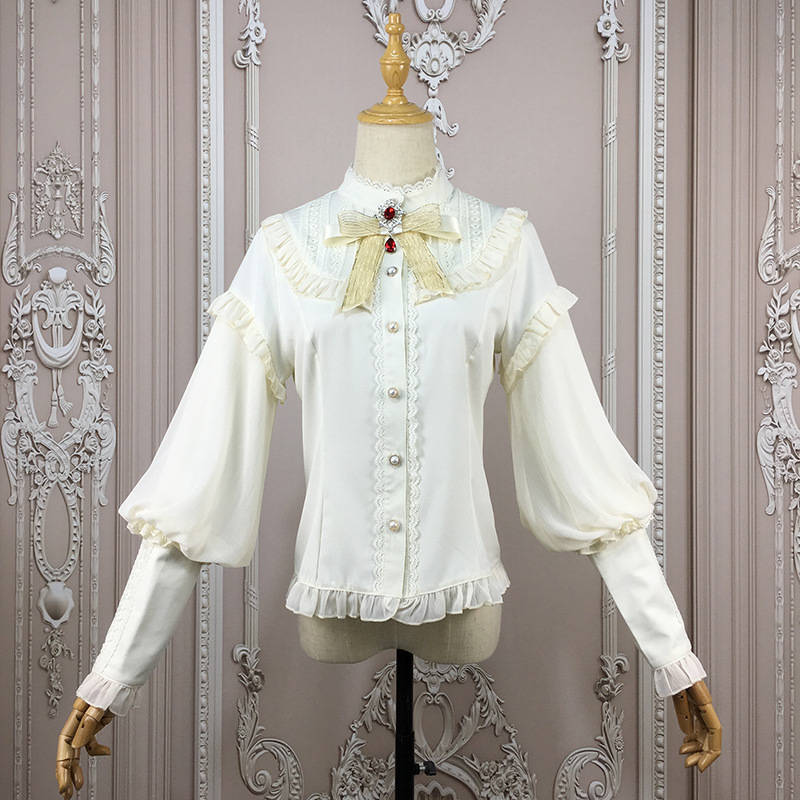 봄과 가을 로리타 레트로 양고기 다리 슬리브 셔츠 세로 칼라 긴 소매 쉬폰 내부베이스 슬림 탑 셔츠