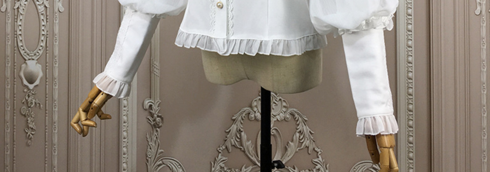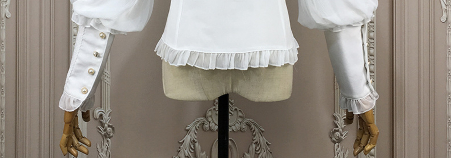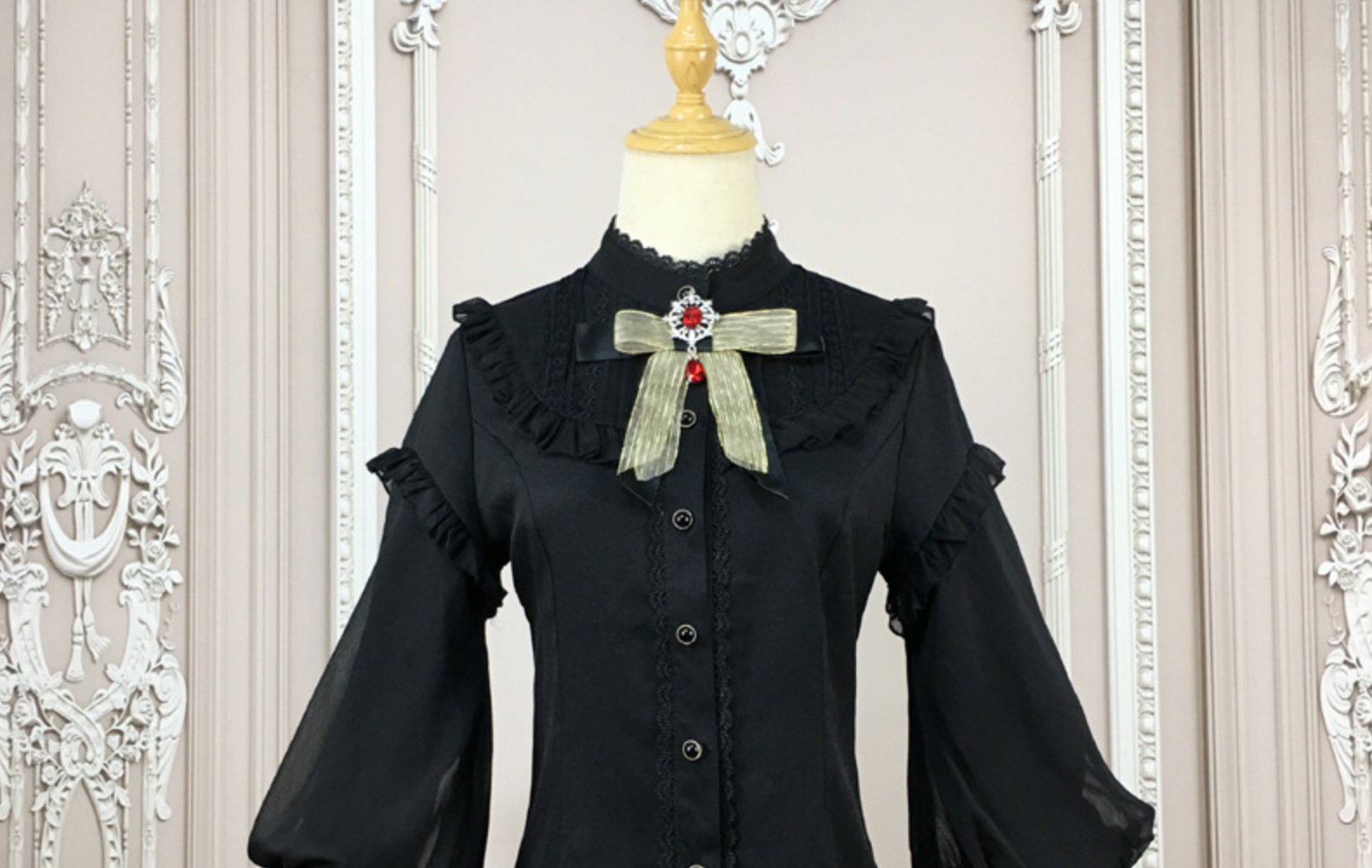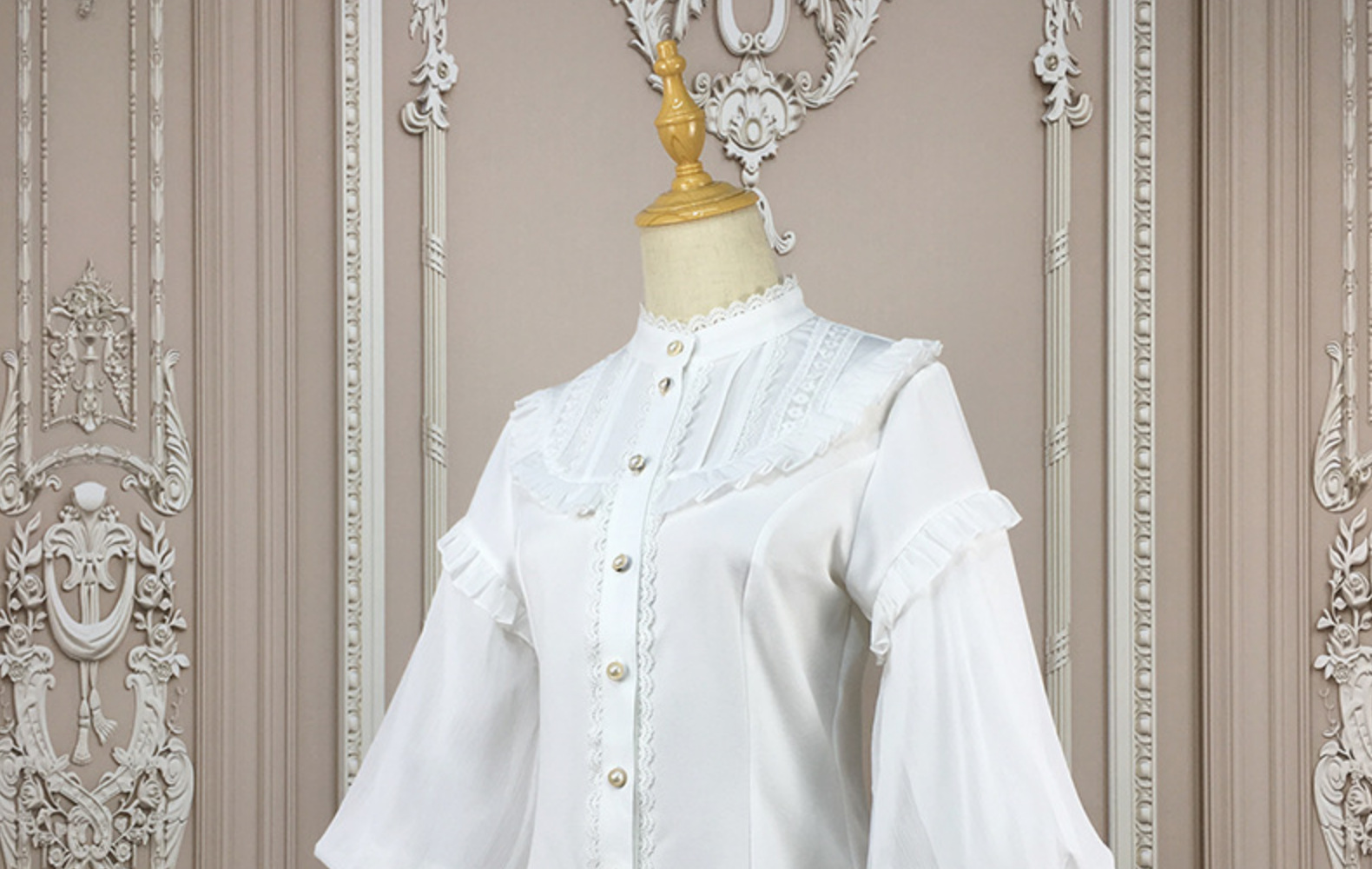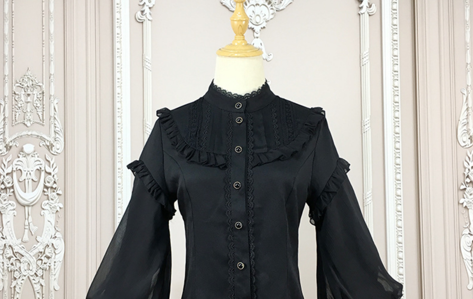 봄과 가을 로리타 레트로 양고기 다리 슬리브 셔츠 세로 칼라 긴 소매 쉬폰 내부베이스 슬림 탑 셔츠