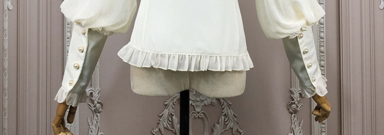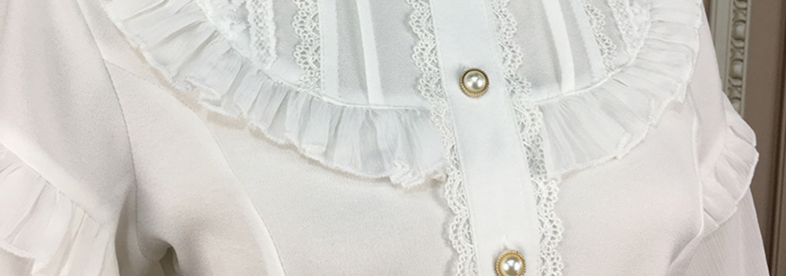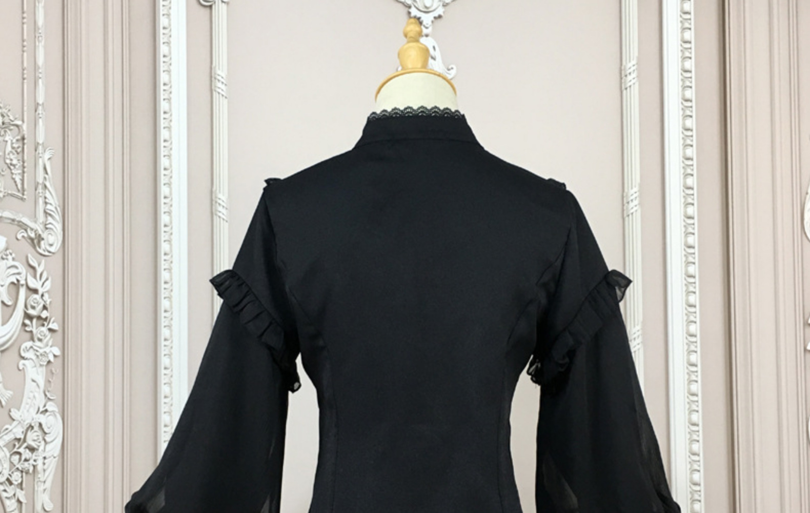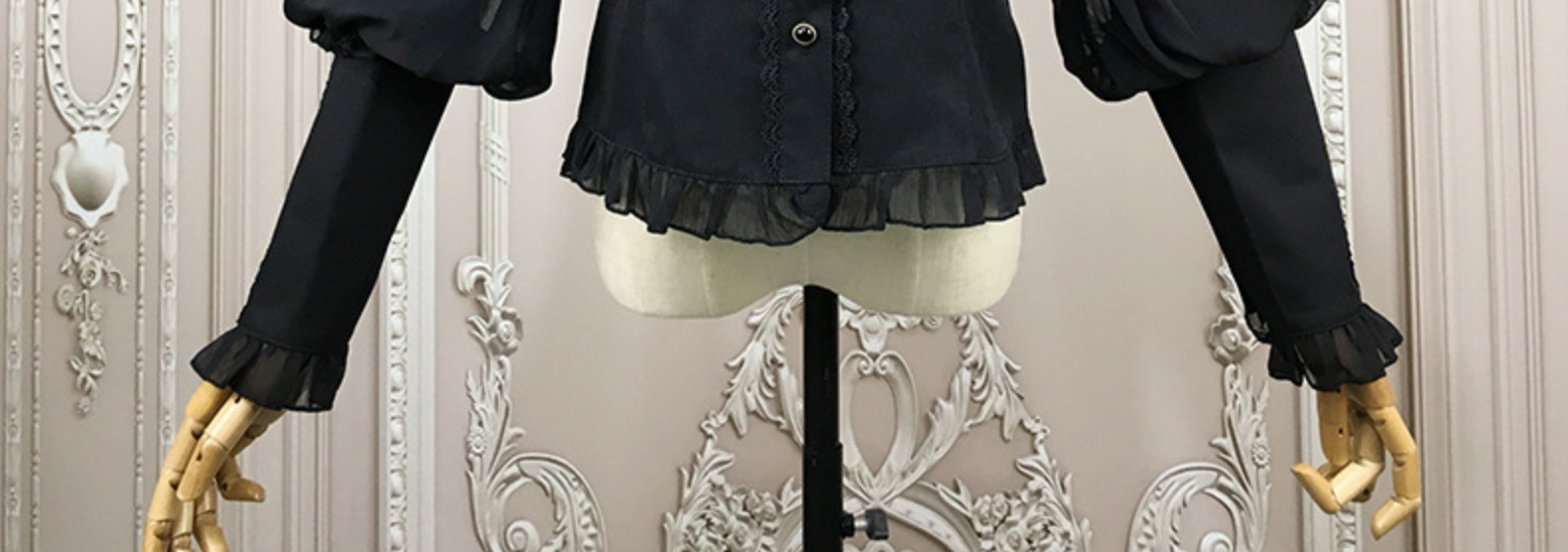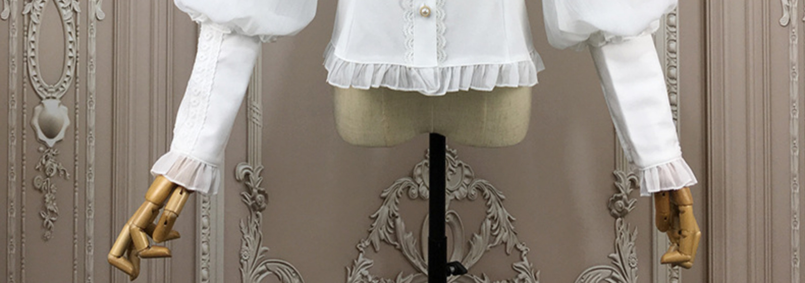 봄과 가을 로리타 레트로 양고기 다리 슬리브 셔츠 세로 칼라 긴 소매 쉬폰 내부베이스 슬림 탑 셔츠