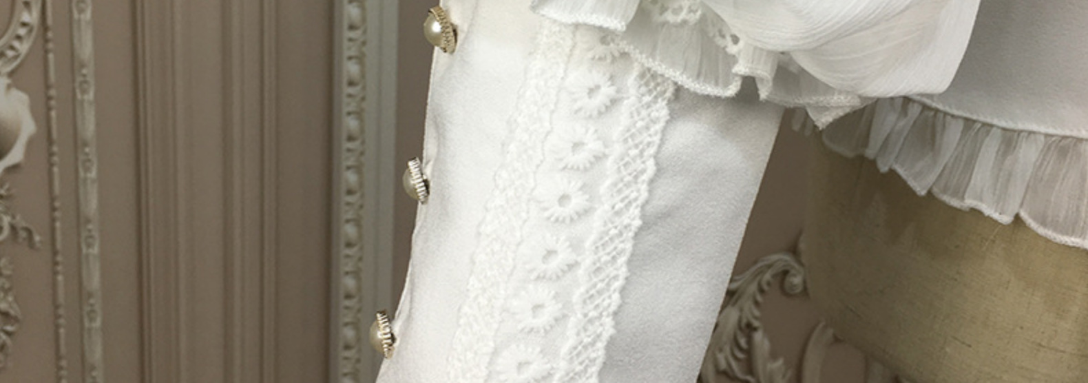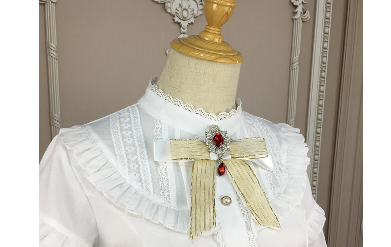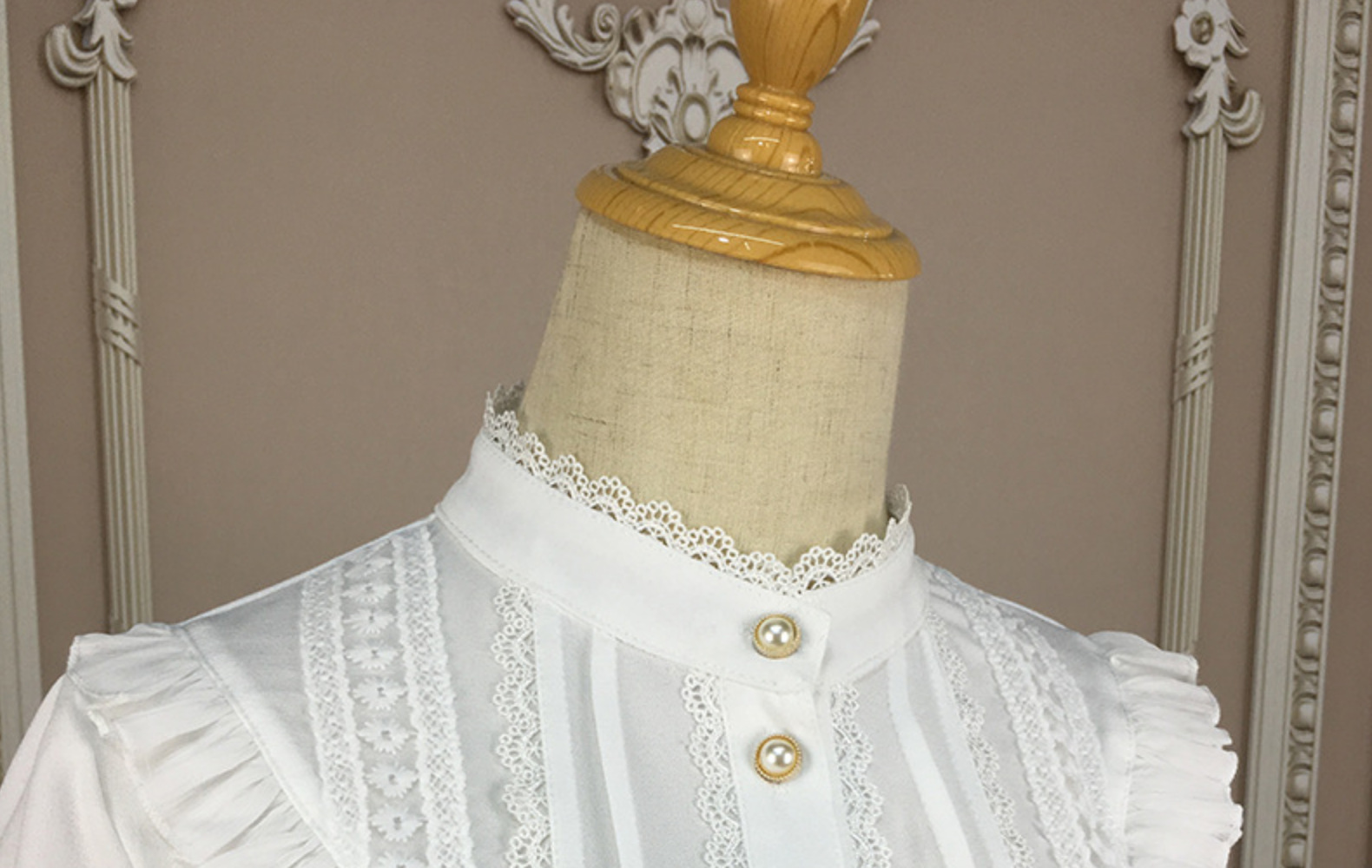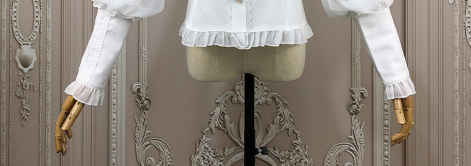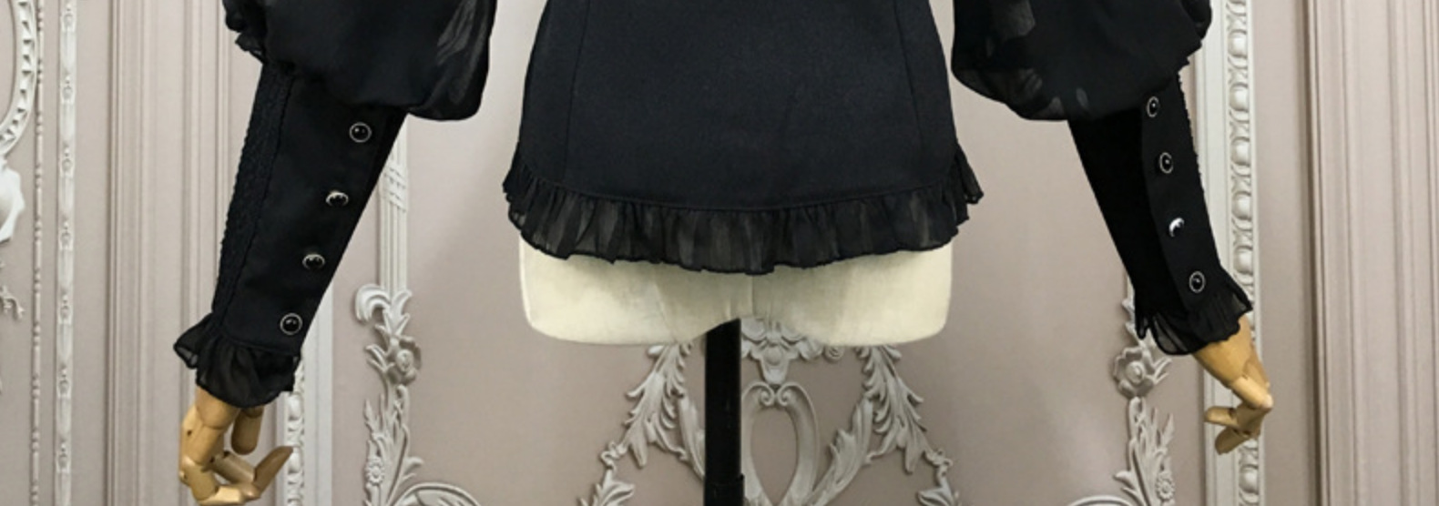 봄과 가을 로리타 레트로 양고기 다리 슬리브 셔츠 세로 칼라 긴 소매 쉬폰 내부베이스 슬림 탑 셔츠