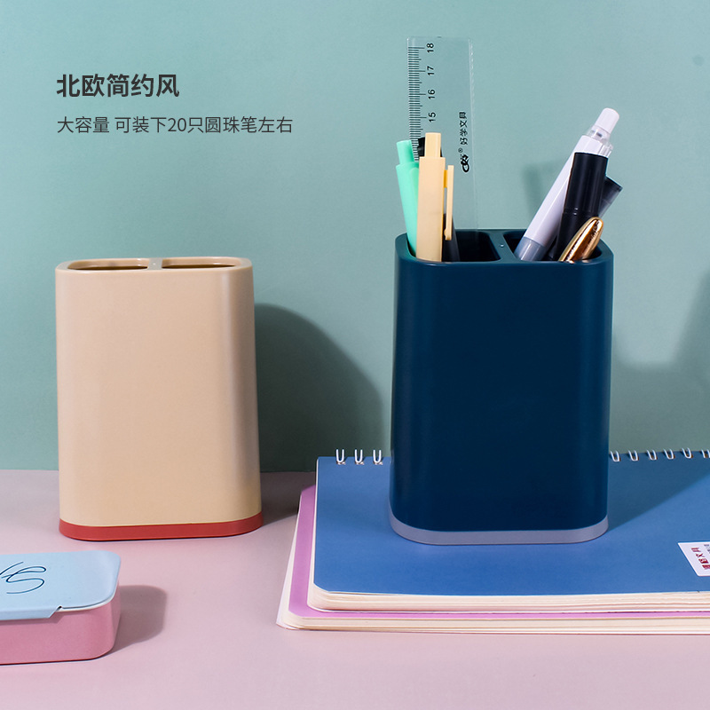 간단한 사무실 책상 보관 문구 창조적 인 2 색 2 그리드 펜 홀더 비즈니스 선물 인쇄 가능한 광고 로고