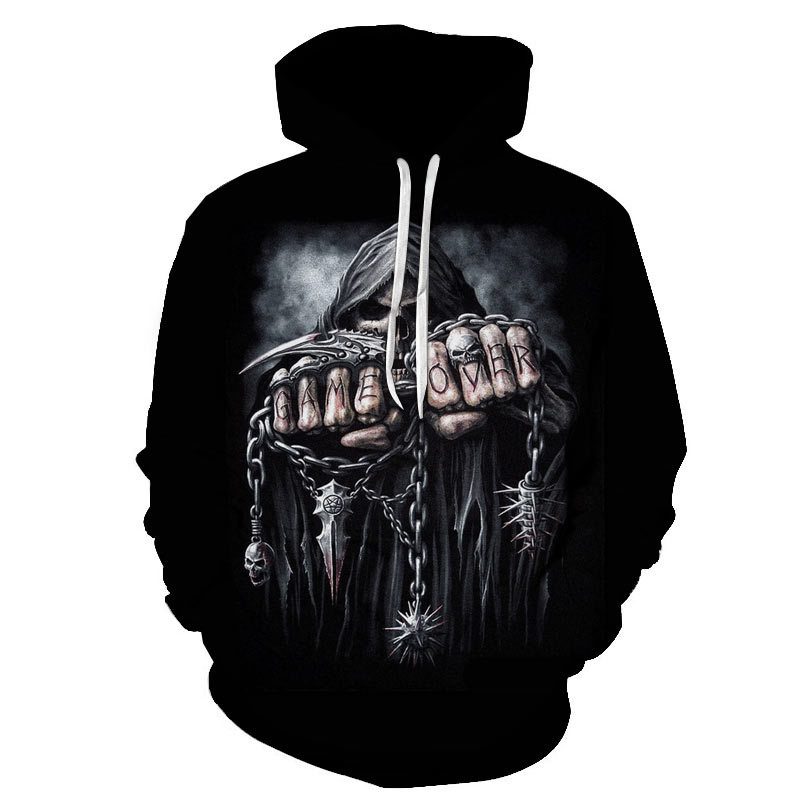 국경 간 가을 트렌드 해골 3D 디지털 인쇄 남성 후드 스웨터 공장 콘센트