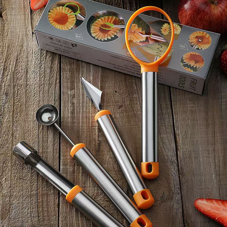 스테인레스 스틸 과일 조각 칼 세트 과일 조각 플래터 도구 과일 볼 파인더 식품 패턴 조각 칼