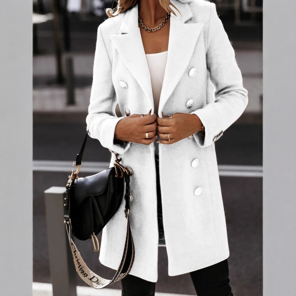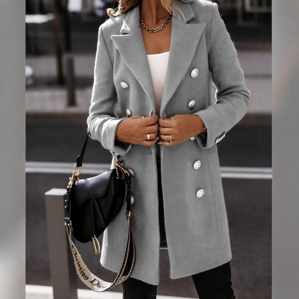 2020速卖通wish亚马逊爆款 秋冬长袖西装领双排扣妮子外套大衣女