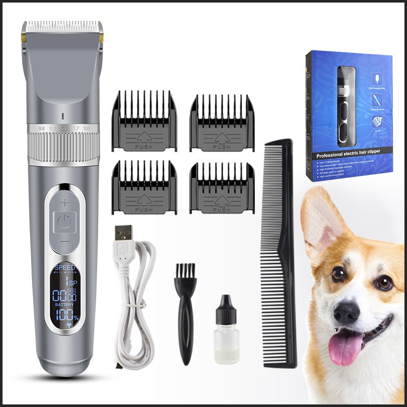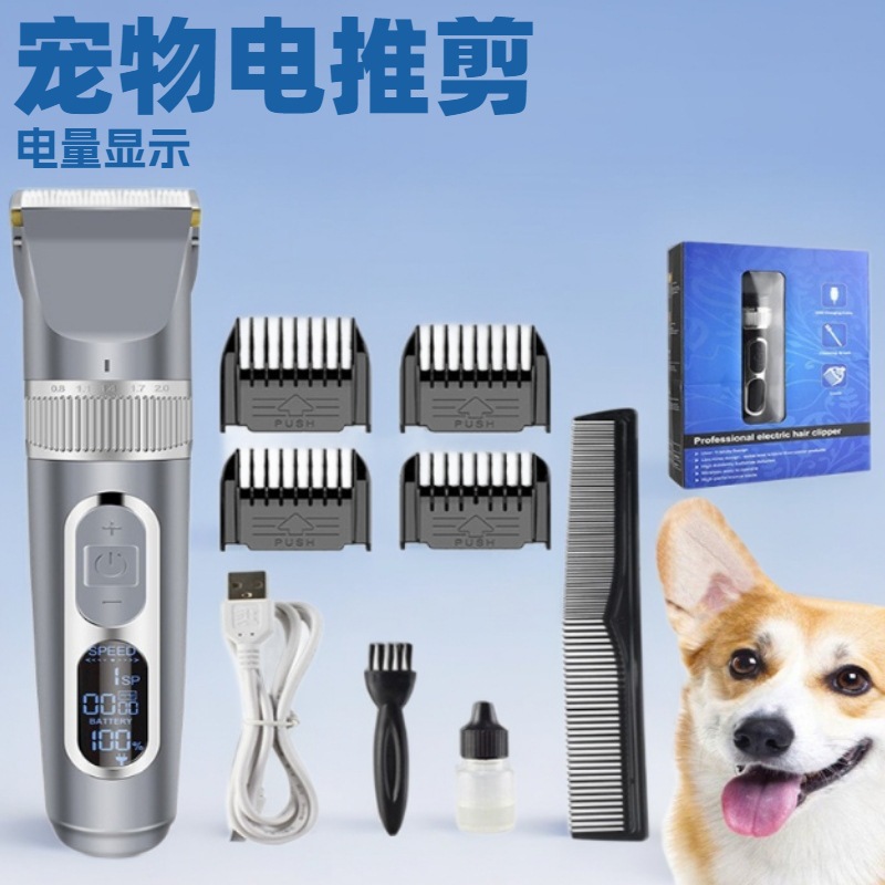 亚马逊新品宠物电推剪理发器猫狗USB充电液晶显示宠物剃毛器套装