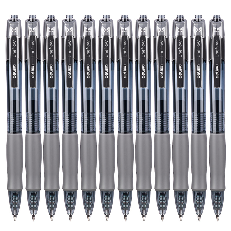 델리 s08 푸쉬형 젤 펜 학생용 총알형 필기구 검정색 잉크펜 사무용 서명펜 문구류
