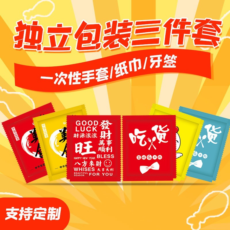 공장 직공급 크리에이티브 독립 포장 일회용 장갑 종이 타월 이쑤시개 3 종 세트 케이터링 테이크 아웃 식품 등급