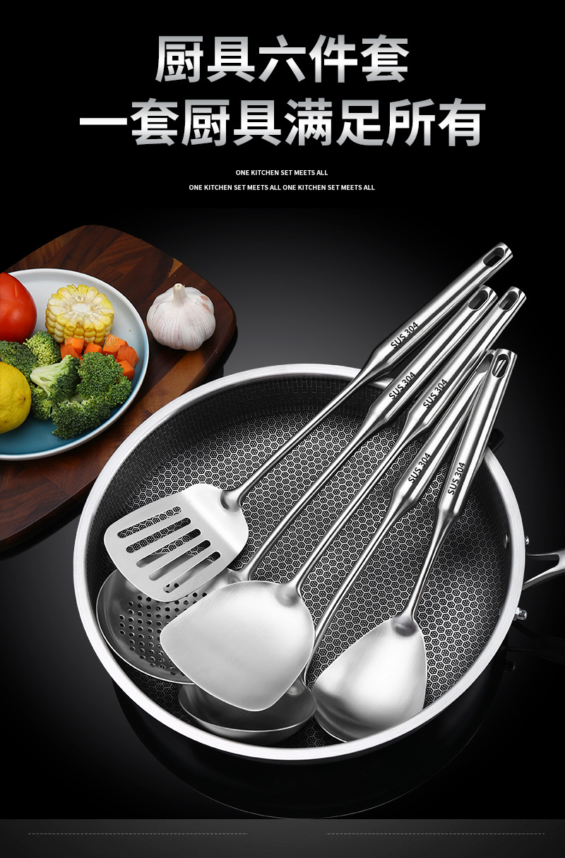304 스테인레스 주걱 수프 스푼 주방용품 세트 볶음 삽 두껍게 데우는 방지 튀김 스푼 소쿠리 주방 용품