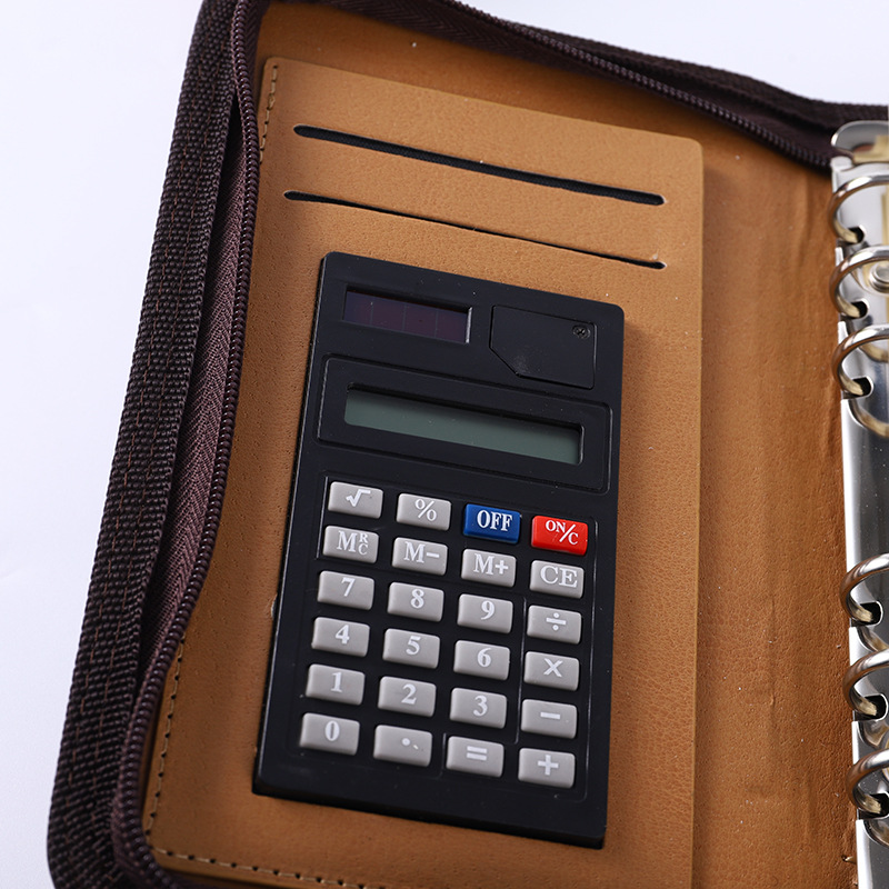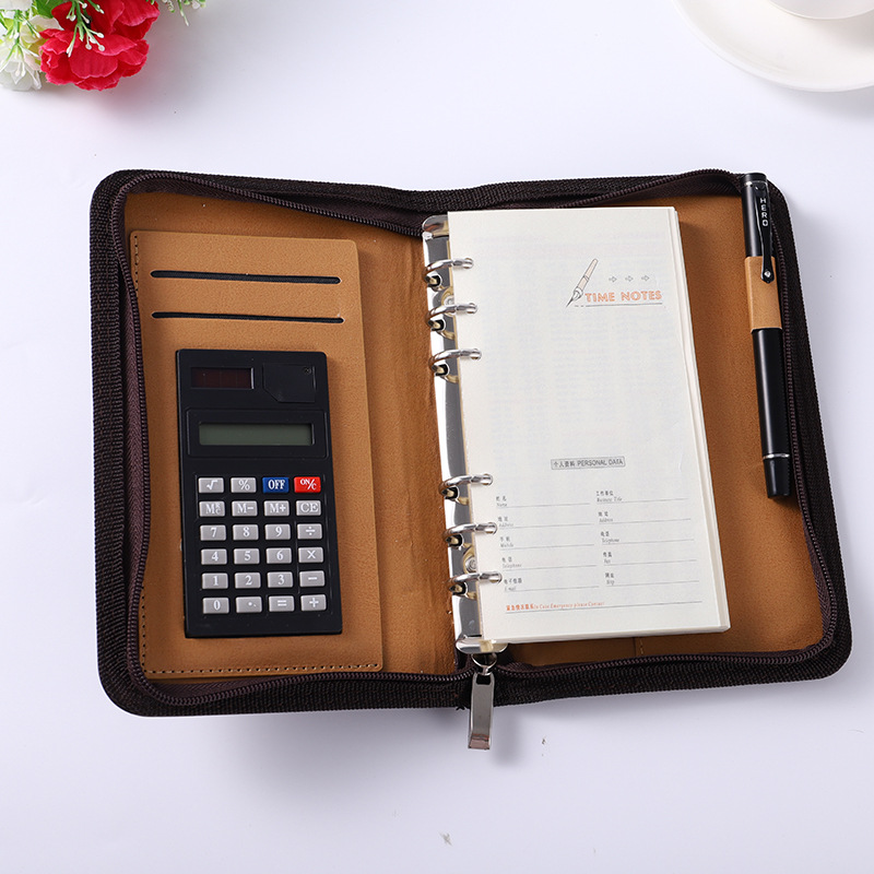A6A5 루스리프 지퍼 노트북, 8자리 디지털 계산기 포함, 비즈니스 사무용 메모장, 로고 맞춤 가능, 심플 디자인