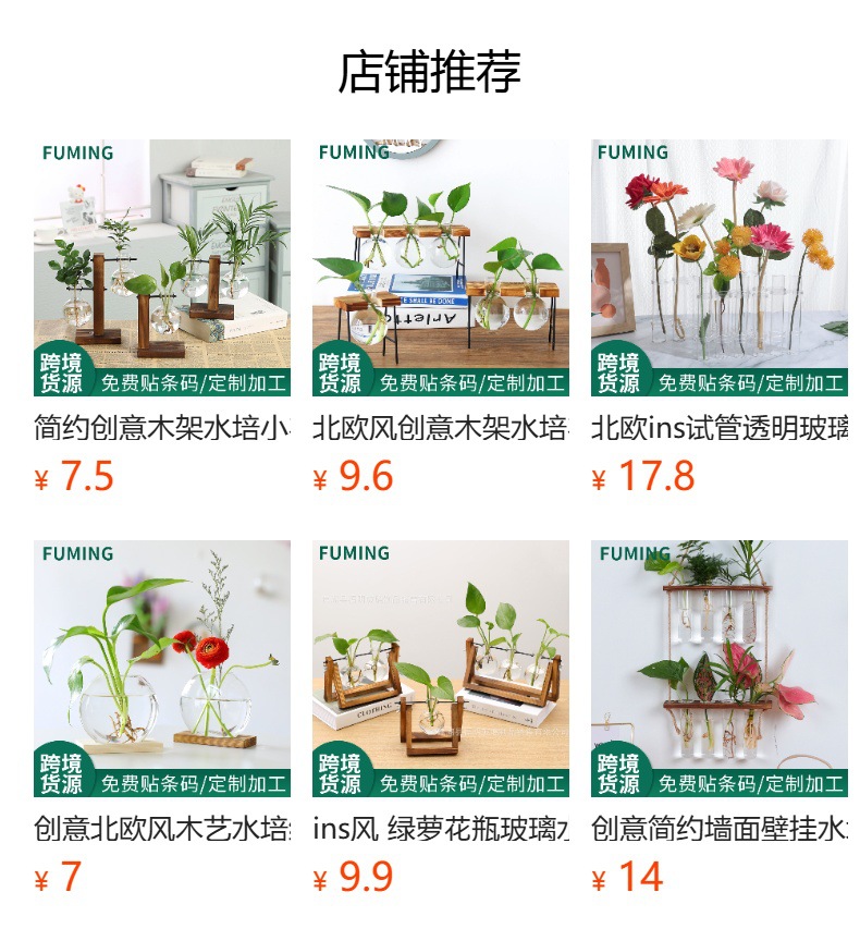 인스 스타일 녹색 식물 꽃병 유리 수경재배 식물 용기 소프트 데코 드라이플라워 홈 장식 사무실 책상 장식품