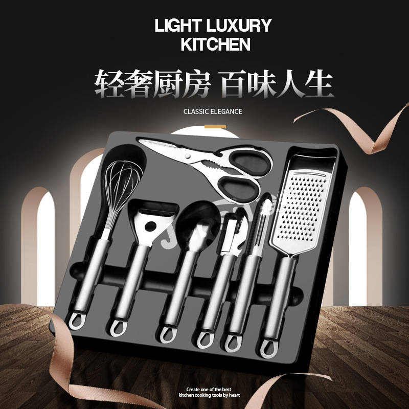 주방 도구 세트 주방 가위 스테인레스 계란 비터 캔 오프너 필링 나이프 칼 선물 7 조각 세트