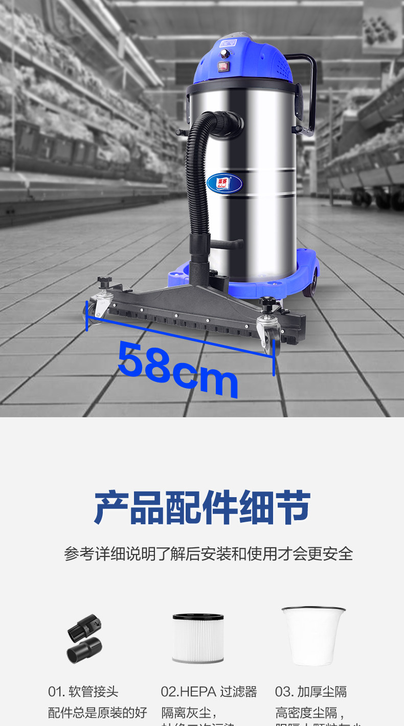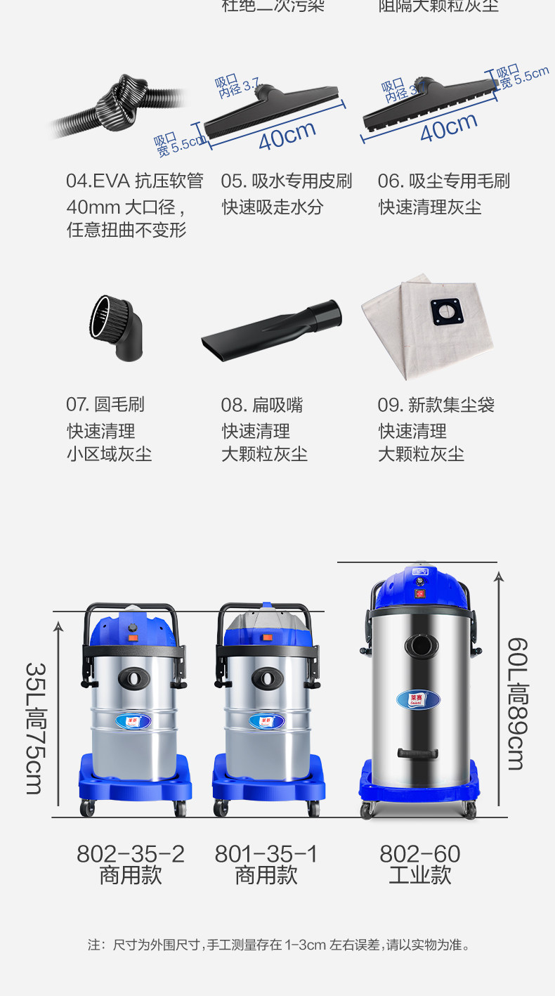 Lesai 상업용 진공 청소기 대형 흡입 산업 고전력 공장 작업장 먼지 세차 진공 청소기 LS35L