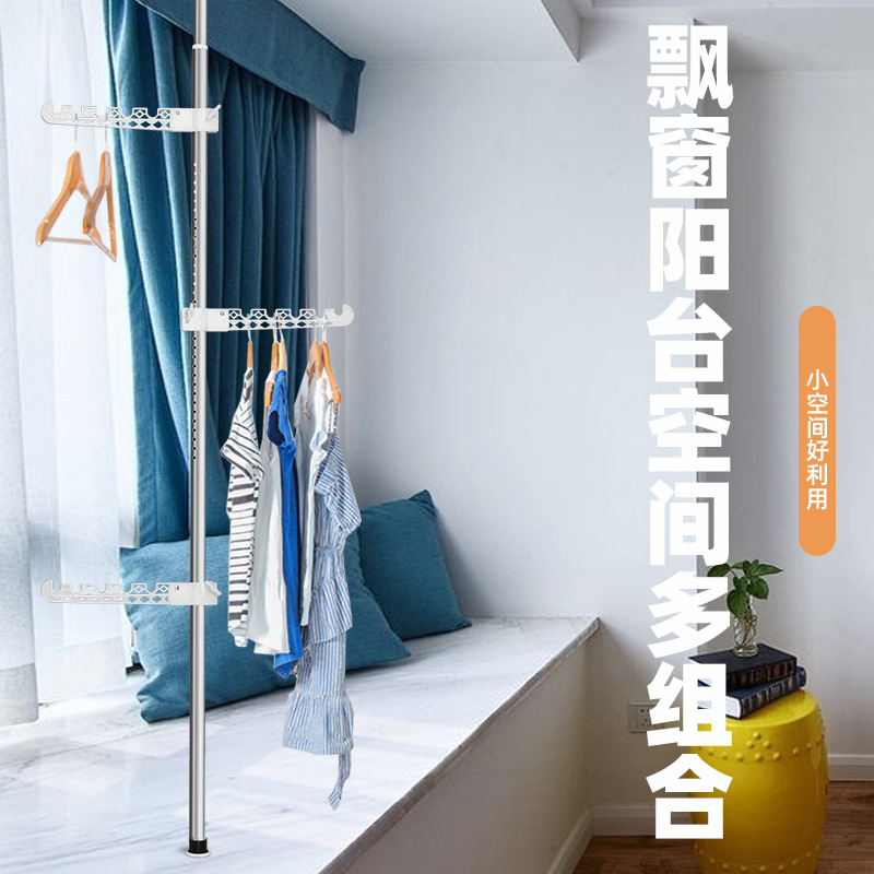 바닥에 서있는 옷 옷걸이 홈 바닥 실내 펀치 프리 싱글로드 텔레스코픽 로드 발코니 건조 옷걸이