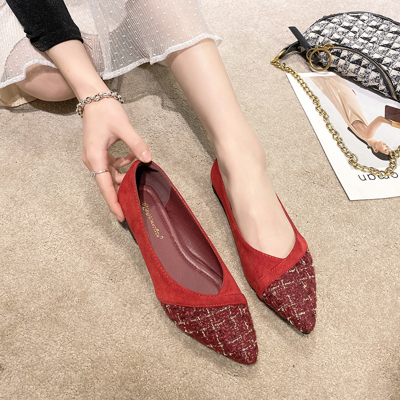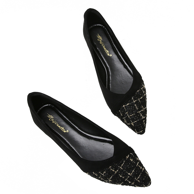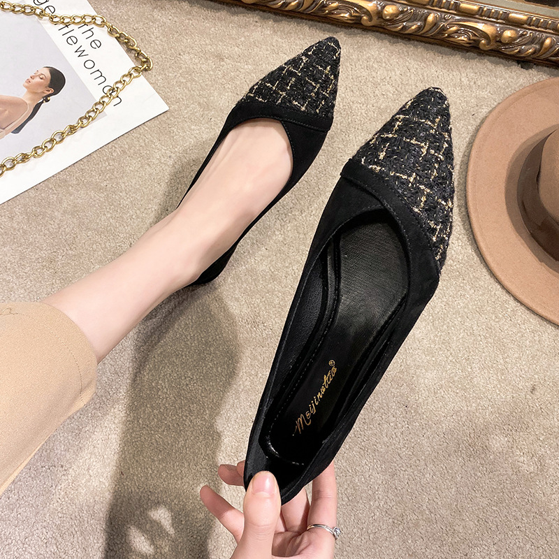 2021 여름 새로운 스타일 샤넬 스타일의 뾰족한 싱글 슈즈 여성용 낮은 입 플랫 슈즈 모든 매치 플러스 사이즈 여성 신발 41-43