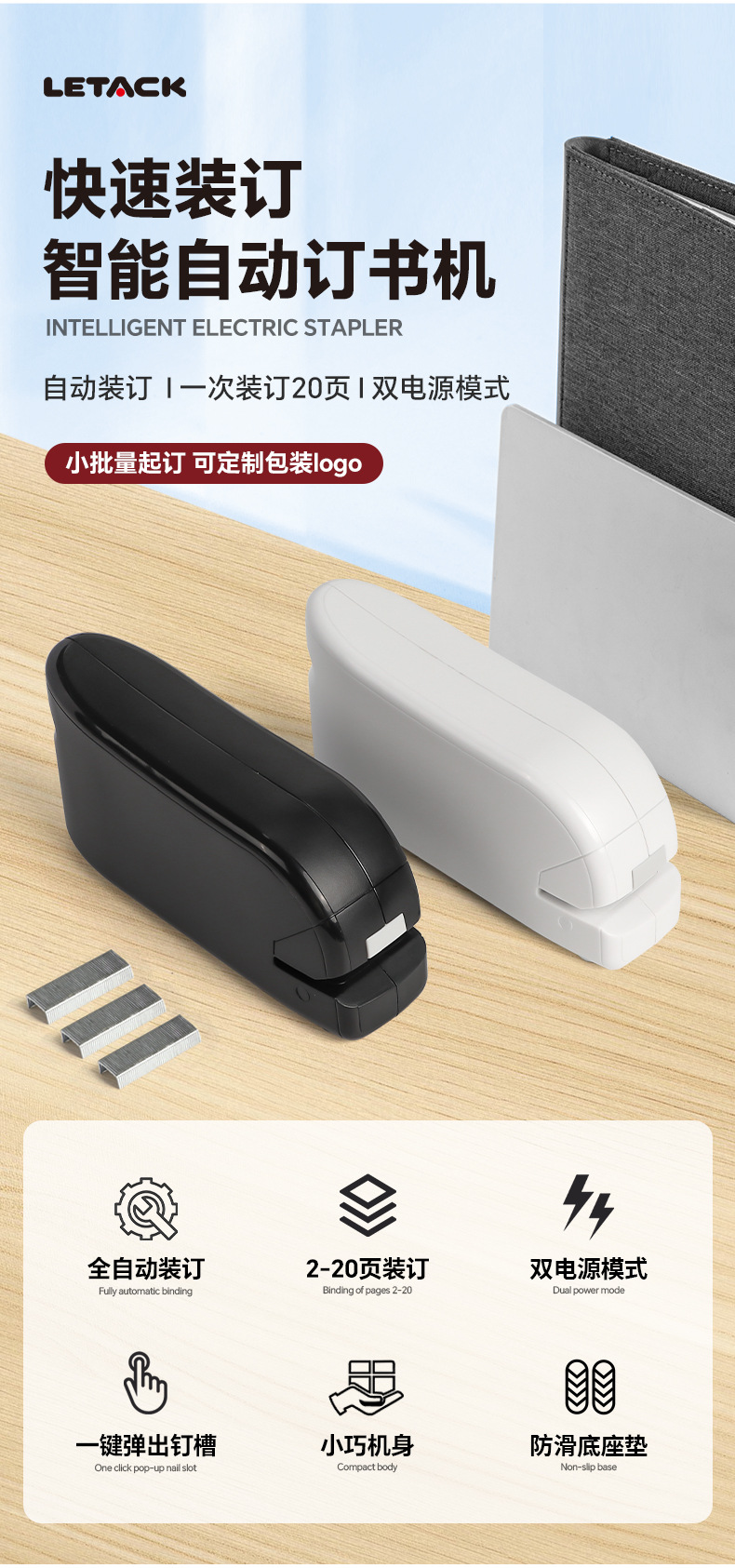 독일 기술 하이 엔드 전기 스테이플러 중간 노동 절약 20 페이지 사무실 문구 자동 유도 스테이플러