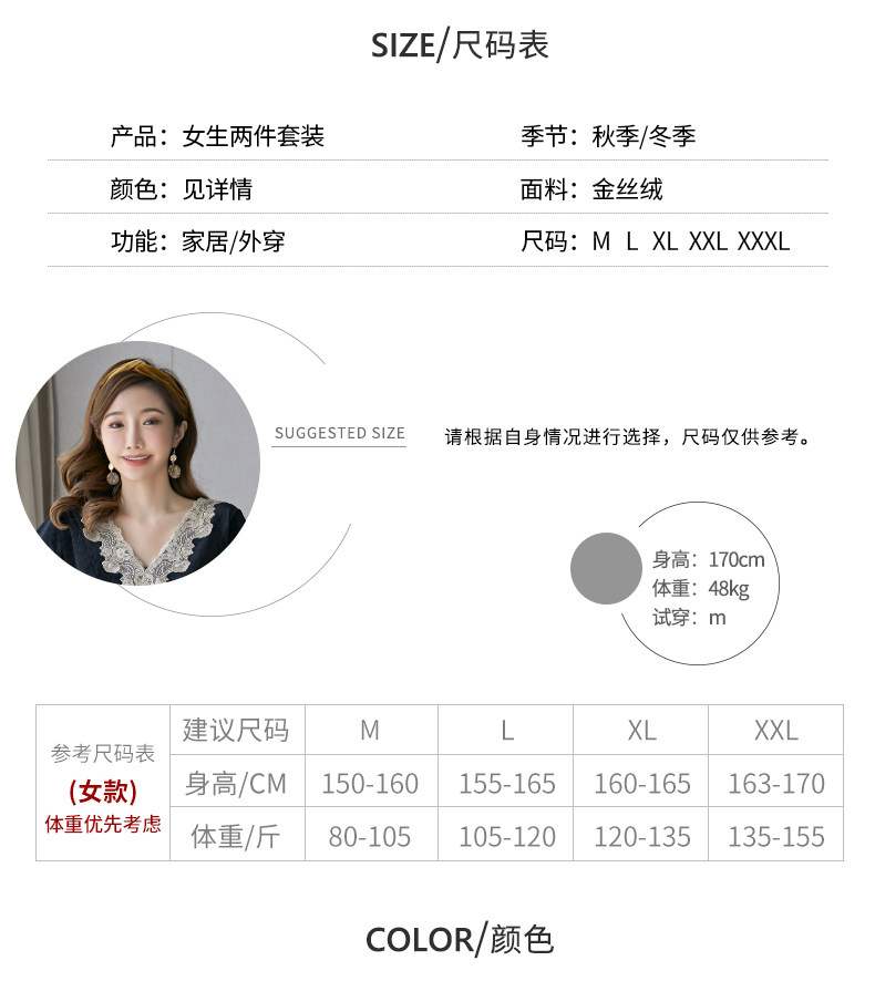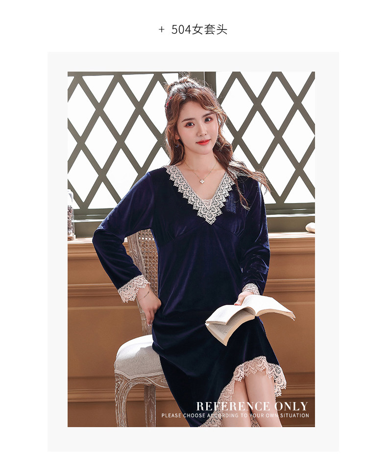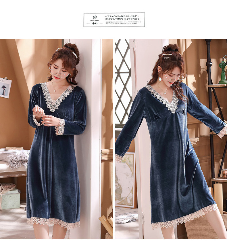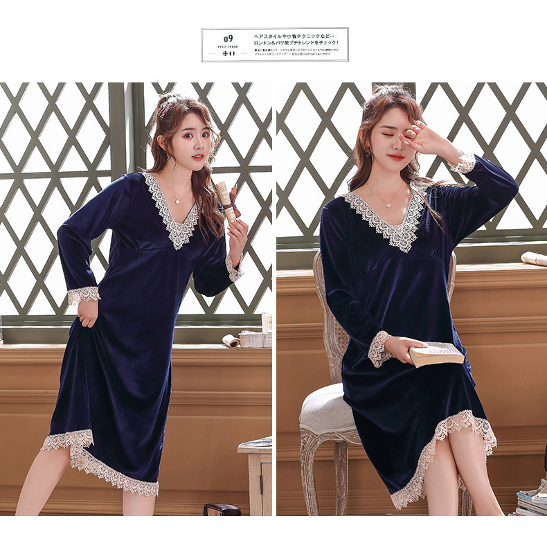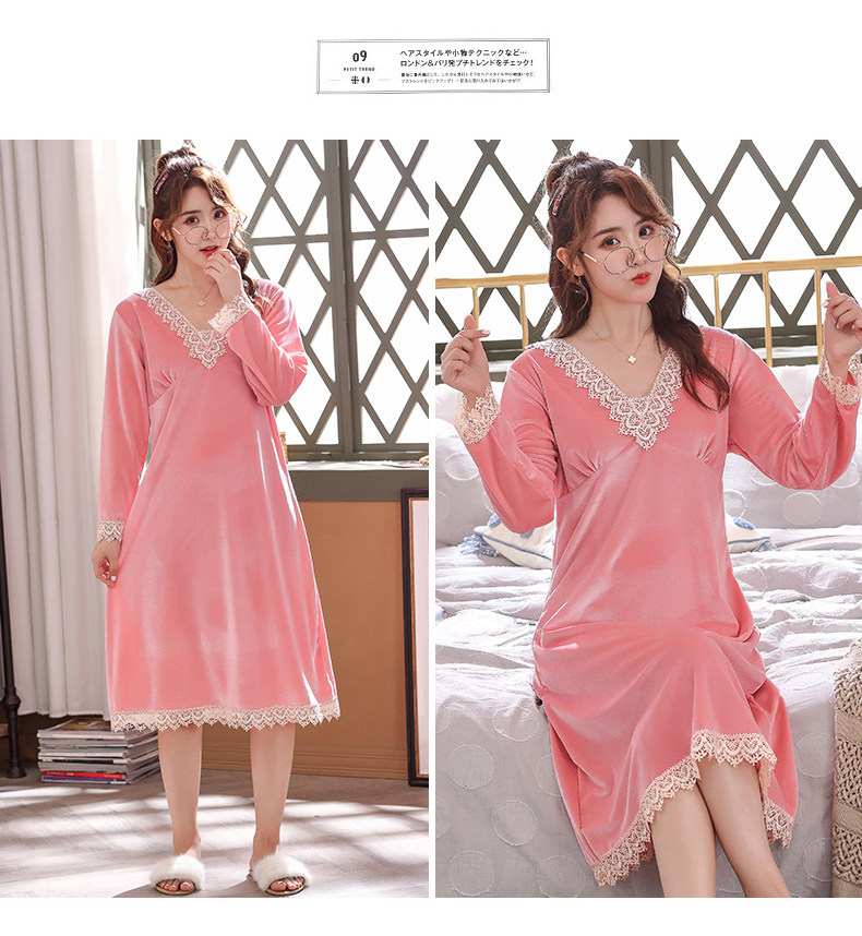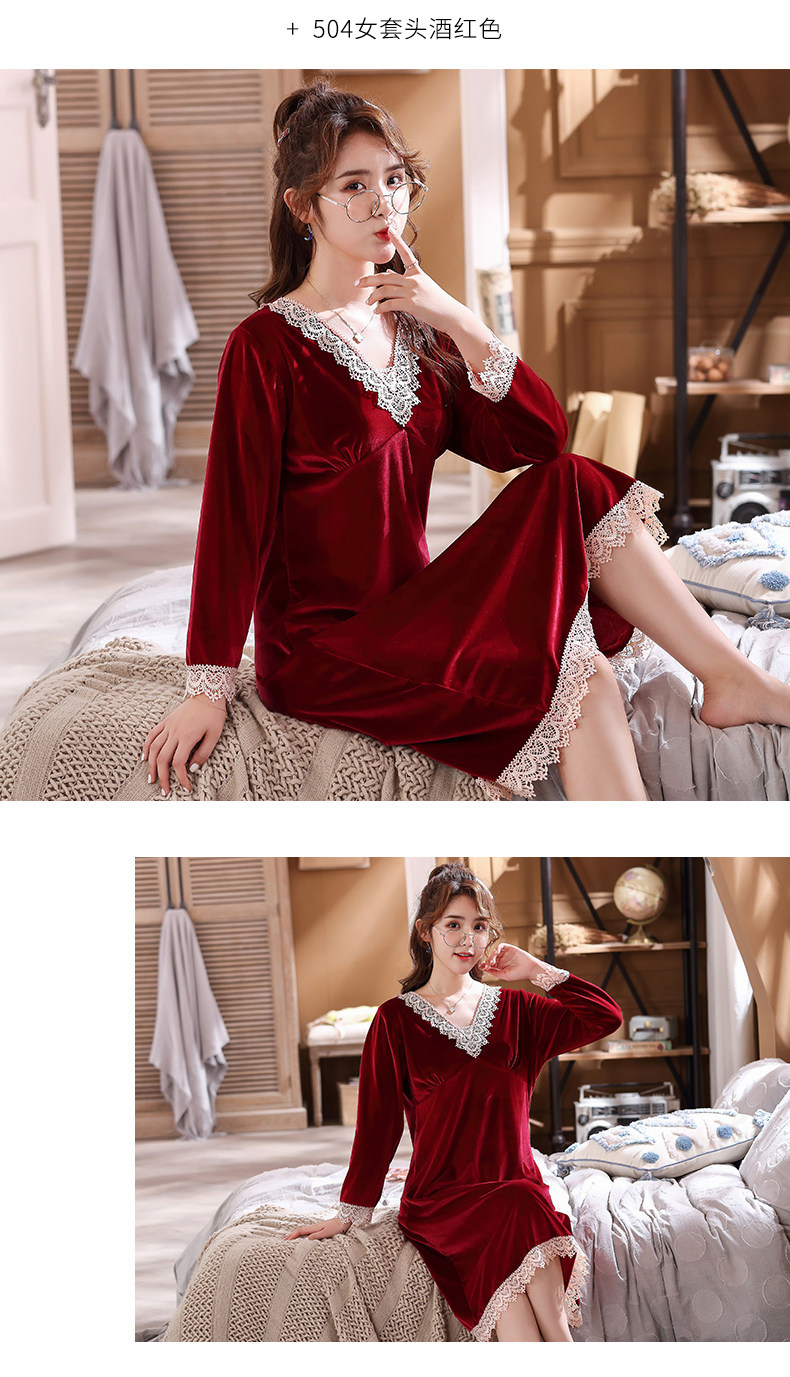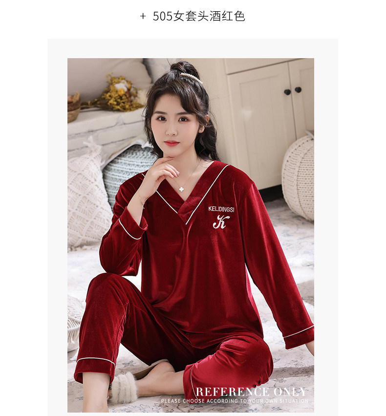 가을과 겨울 여성의 골드 벨벳 잠옷 긴팔 한국 얇은 풀오버 레이스 산호 벨벳 홈 의류 세트 플러스 사이즈